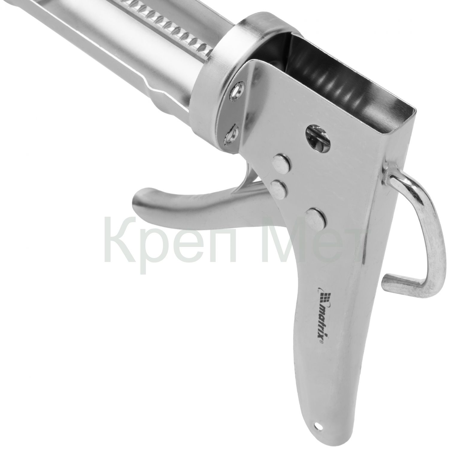 - Пистолет для герметика, 310 мл, "полуоткрытый", хромированный, зубчатый шток 7 мм Matrix