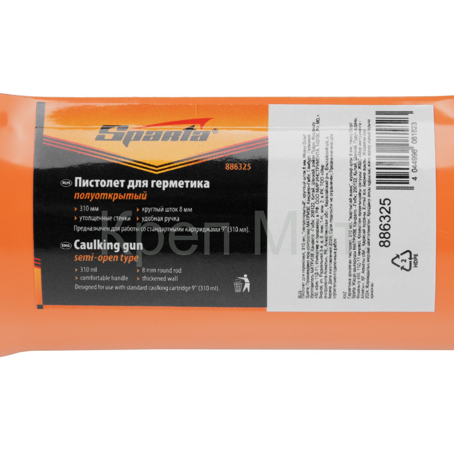 - Пистолет для герметика, 310 мл, "полуоткрытый", круглый шток 8 мм, Heavy Duty Sparta