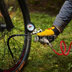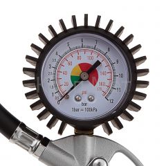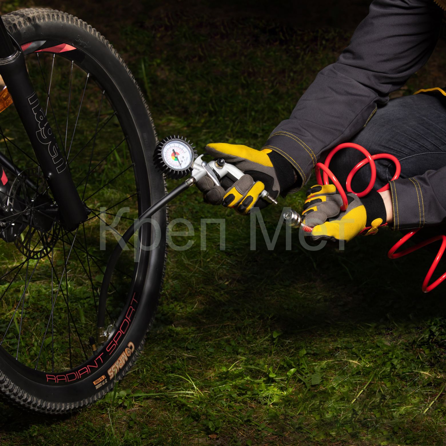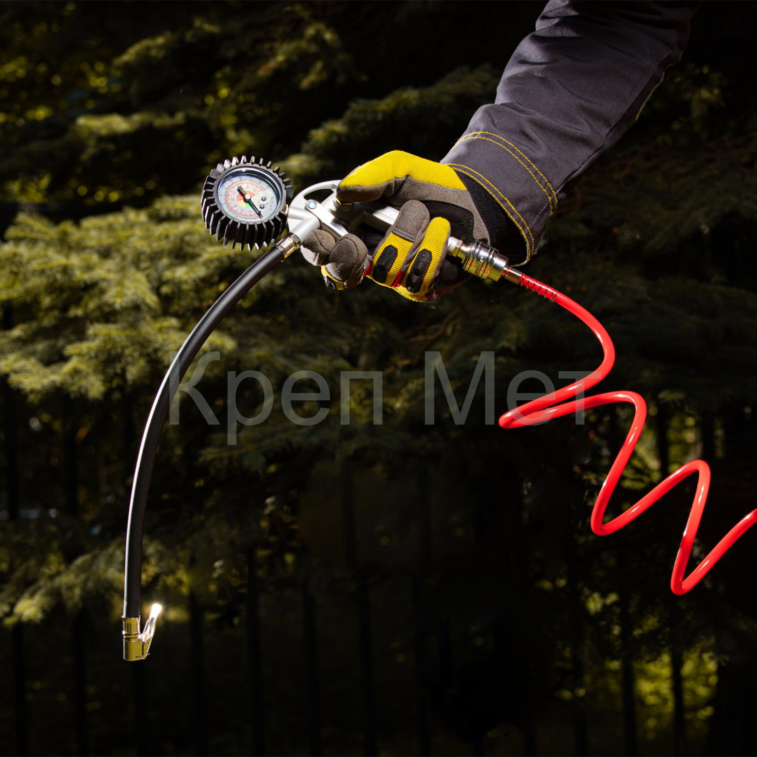 - Контроль параметров работы — 2 шкалы на манометре (Пси и Бар) позволяют отслеживать и регулировать давление в шинах.