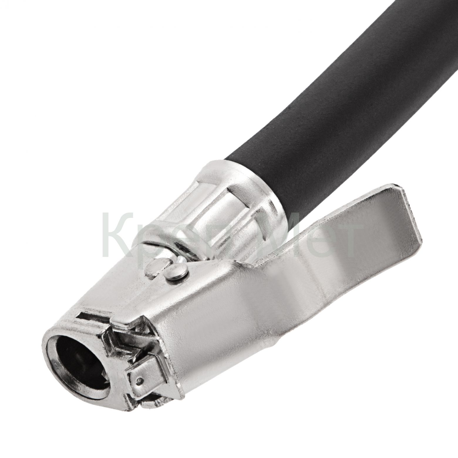 - Гибкий шланг — он не твердеет на морозе, облегчает работу в труднодоступных местах и подкачку спаренных колес.