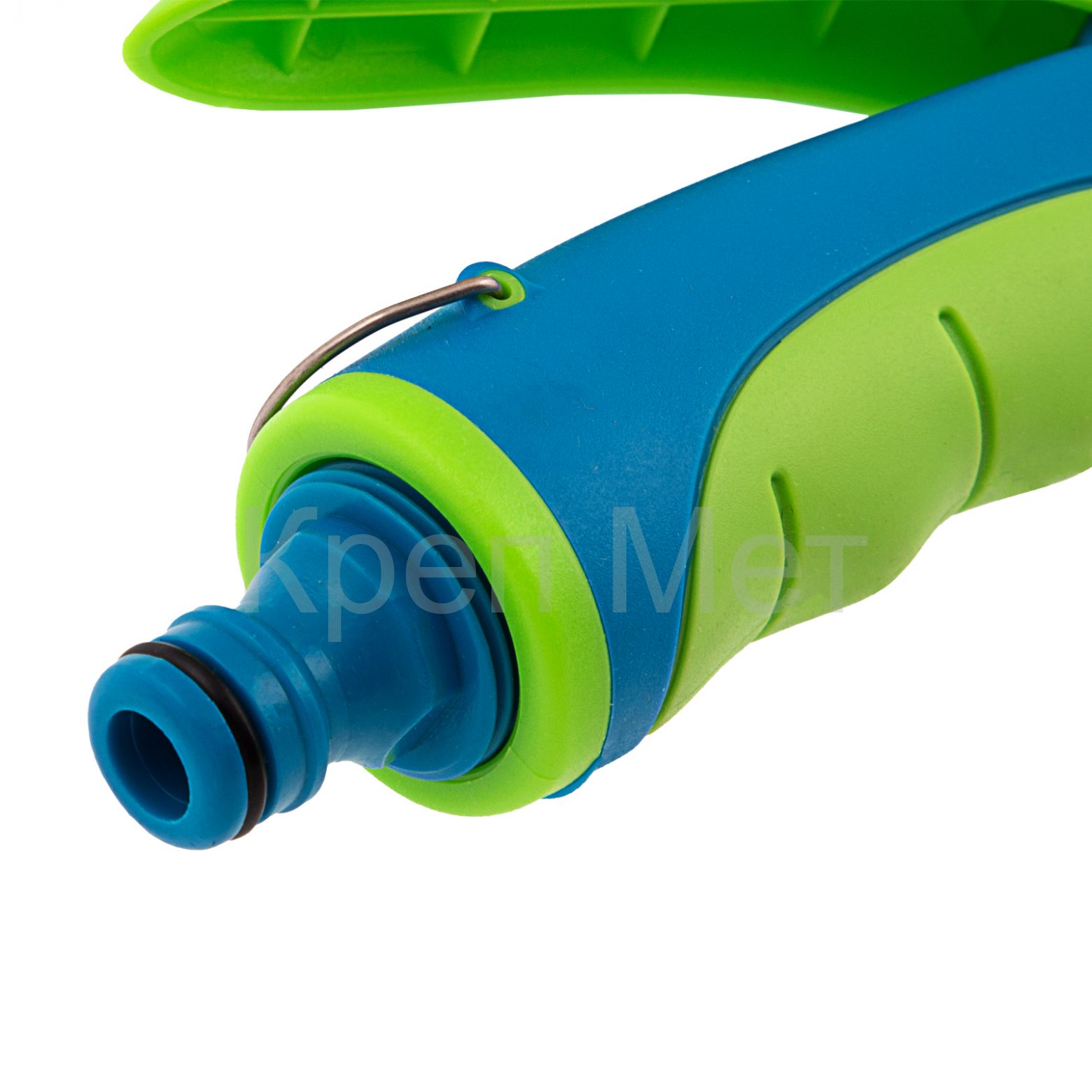 - Быстросъемный коннектор с аквастопом — после отсоединения пистолета подача воды моментально прекращается.