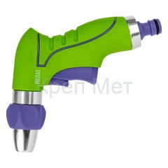 - 5-ступенчатый фиксатор курка позволяет выбрать оптимальный режим распыления (жесткая струя, режимы «туман» и конусный), а также осуществлять непрерывный полив и полное прекращение водоподачи.