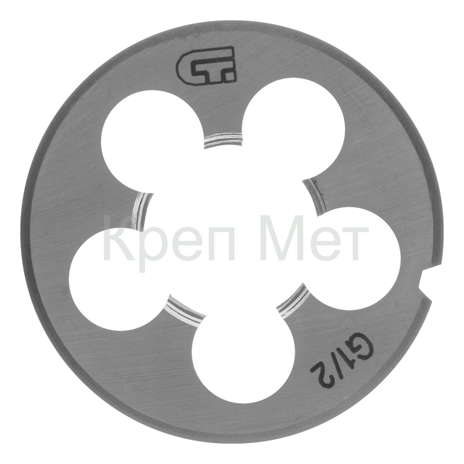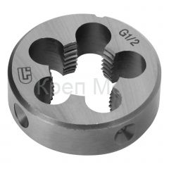 - Надежность и долговечность — плашка изготовлена из инструментальной стали 9XC, твердость режущих кромок составляет 60 HRC в соответствии с ГОСТом.