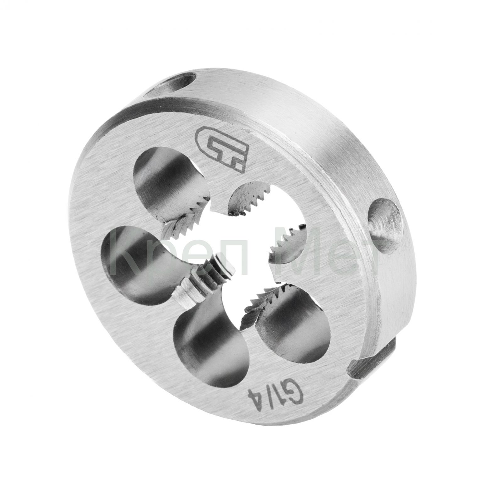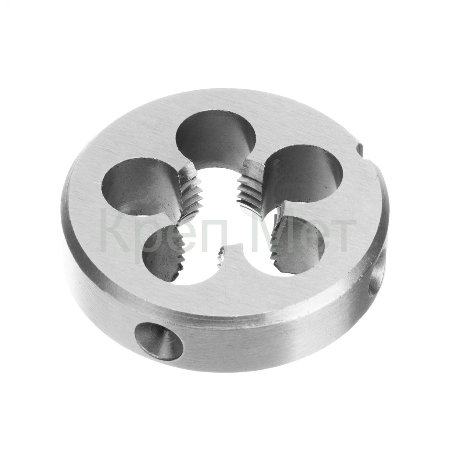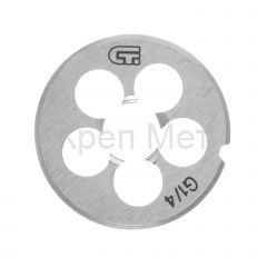 - Надежность и долговечность — плашка изготовлена из инструментальной стали 9XC, твердость режущих кромок составляет 60 HRC в соответствии с ГОСТом.