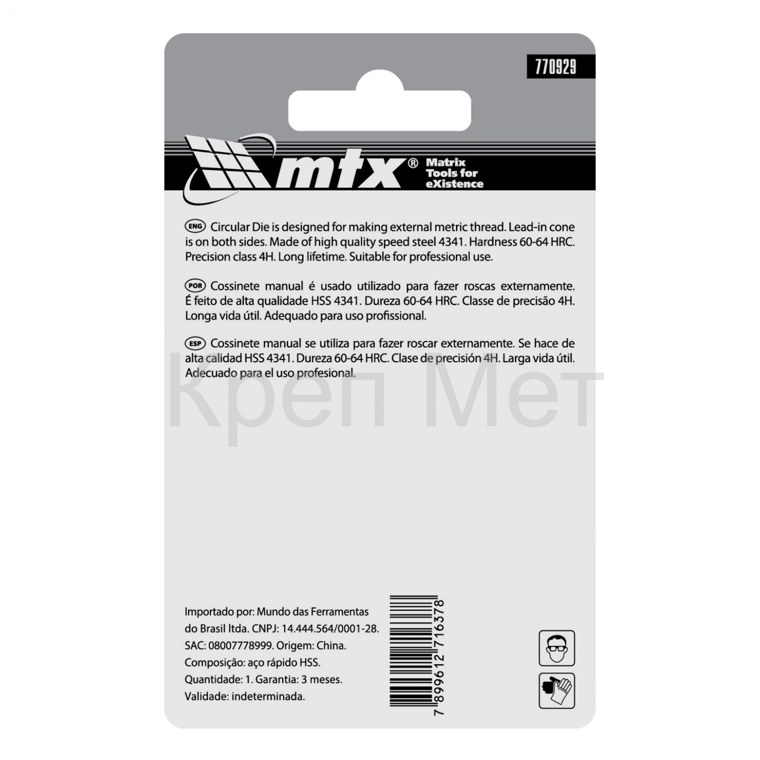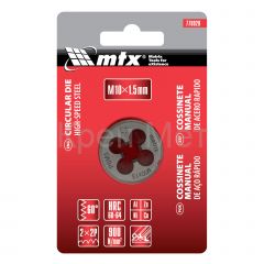 Плашка MTX 770929, HSS, М10 х 1,5 мм, относится к категории резьбонарезного инструмента, предназначенного для восстановления старой или создания новой внешней метрической резьбы на металлических деталях. Благодаря простой конструкции для эксплуатации плашки не требуется особых навыков, что позволяет осуществлять слесарные и монтажные работы в домашних условиях. А за счет цельного корпуса обеспечивается жесткое сцепление с деталью, поэтому резьба получается высококачественной.