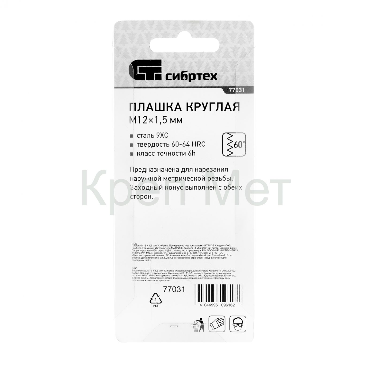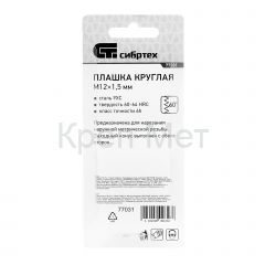 Плашка Сибртех 77031 типоразмера М12 х 1,5 мм предназначена для нарезания внешней метрической резьбы. Проста в использовании, поэтому пригодится даже начинающему мастеру для проведения слесарных и монтажных работ в быту. Цельная конструкция плашки позволяет полностью захватить деталь и нарезать высокоточную резьбу за один проход.