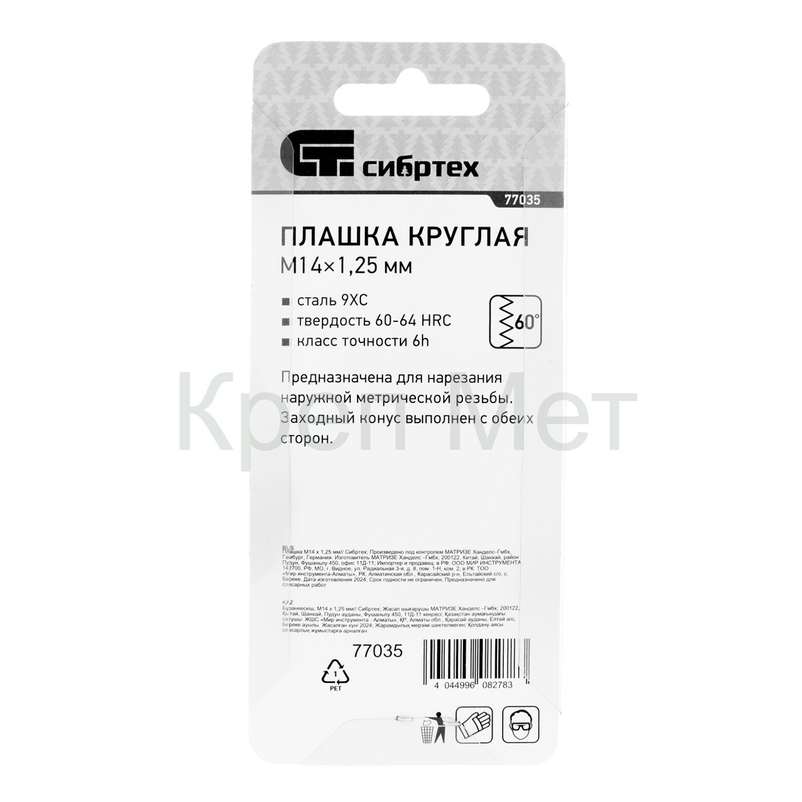 Плашка Сибртех 77035 типоразмера М14 х 1,25 мм предназначена для нарезания внешней метрической резьбы. Проста в использовании, поэтому пригодится даже начинающему мастеру для проведения слесарных и монтажных работ в быту. Цельная конструкция плашки позволяет полностью захватить деталь и нарезать высокоточную резьбу за один проход.