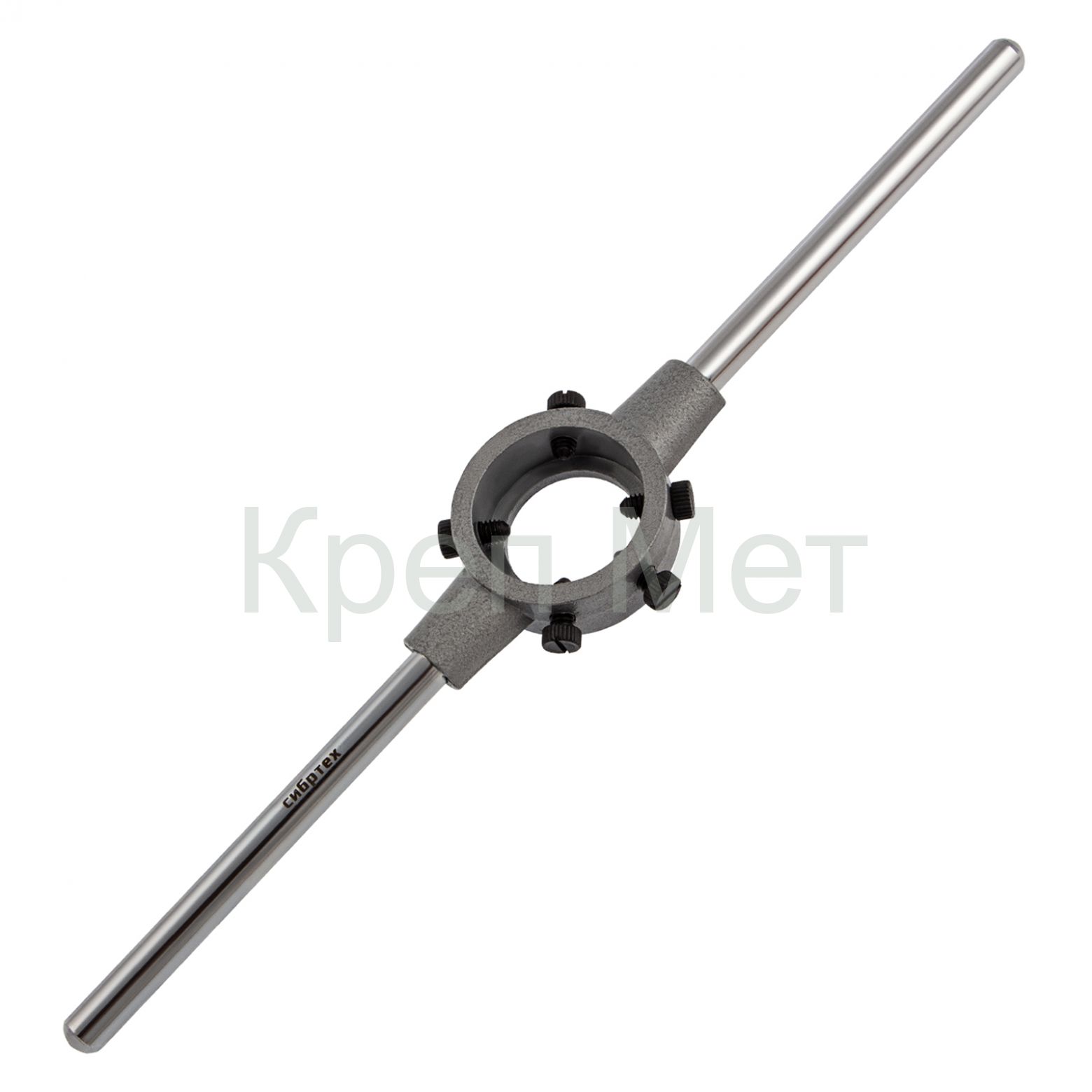 Плашкодержатель Сибртех 77438 предназначен для захвата плашек диаметром 38 мм. Пригодится для ручного нарезания резьбы при проведении слесарных и монтажных работ. Плашкодержатель позволяет приложить необходимое усилие для создания ровной резьбы.