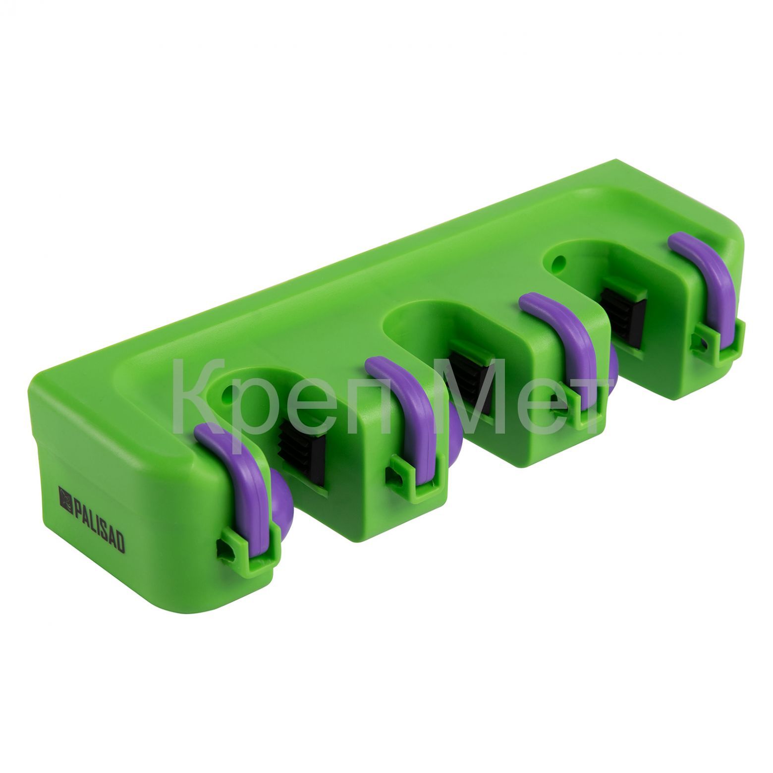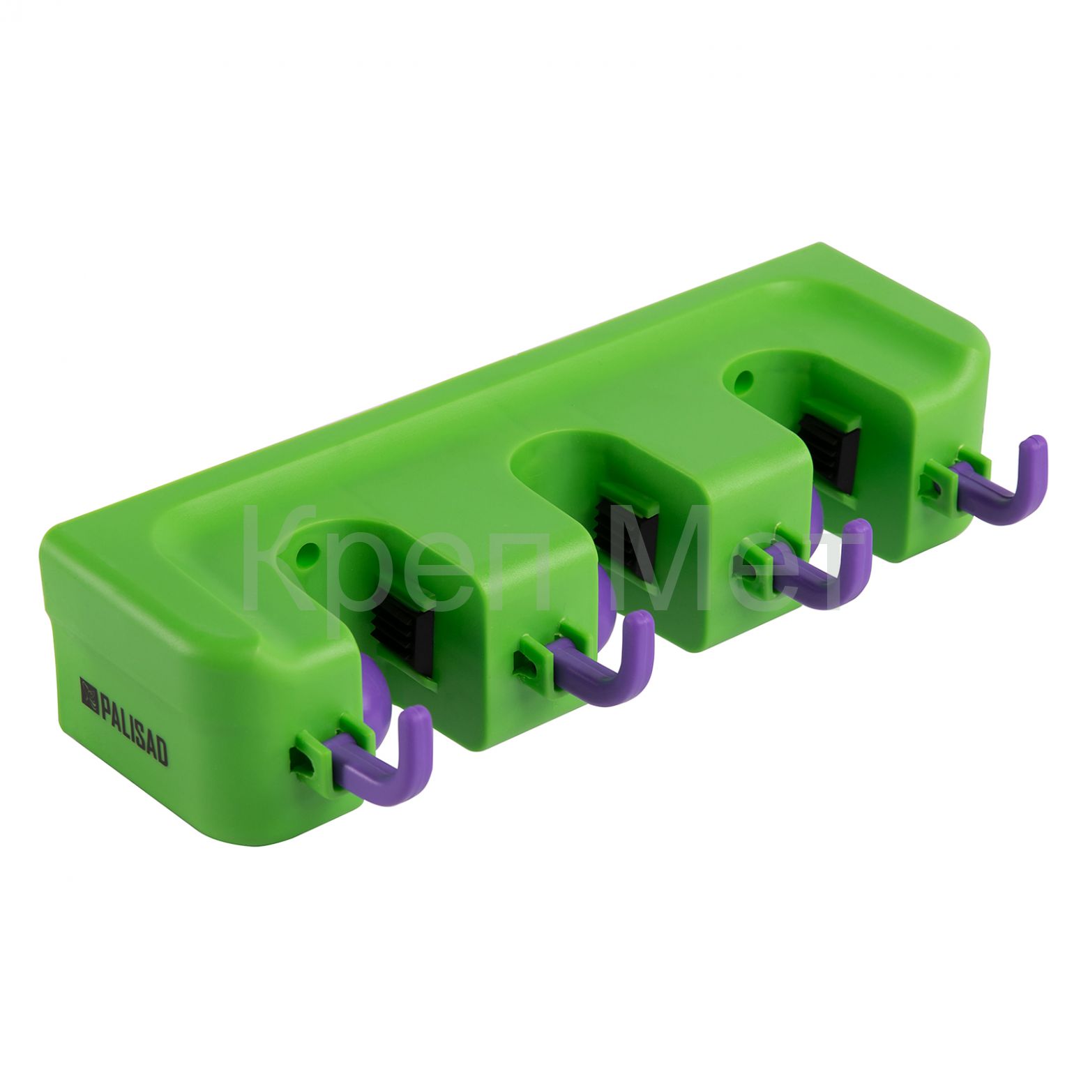- Пластиковый настенный держатель для садово - огородного инструмента, 3 ячейки, 4 крюка, Palisad