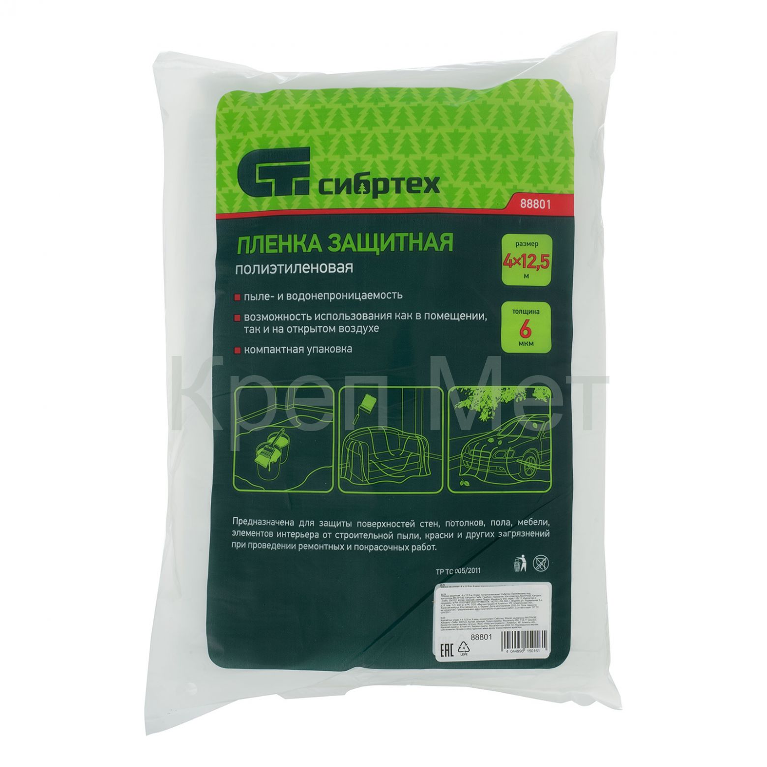 - Пленка защитная, 4 х 12.5 м, 6 мкм, полиэтиленовая Сибртех