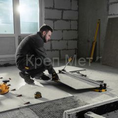 - Удобная работа — благодаря противоскользящим накладкам плиткорез не смещается даже на гладких поверхностях.
