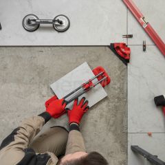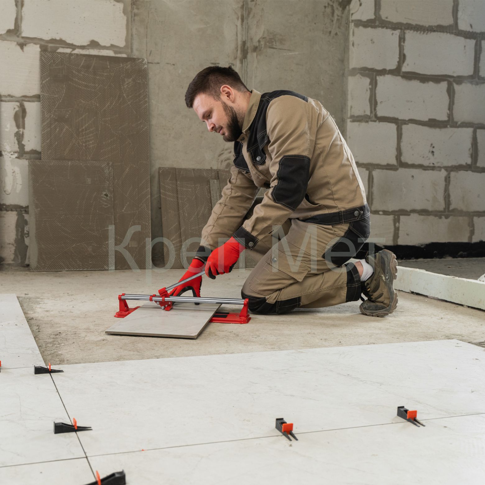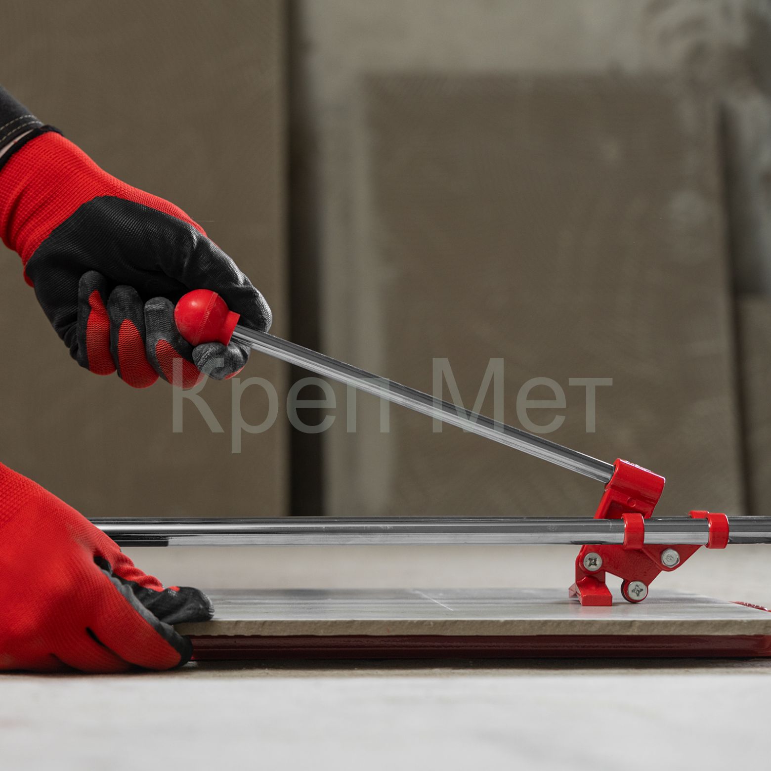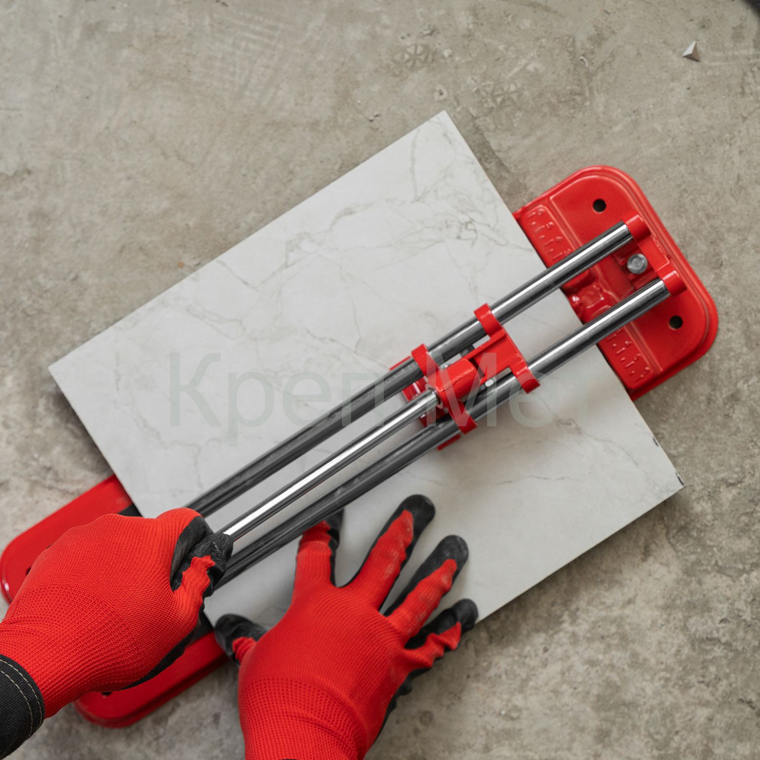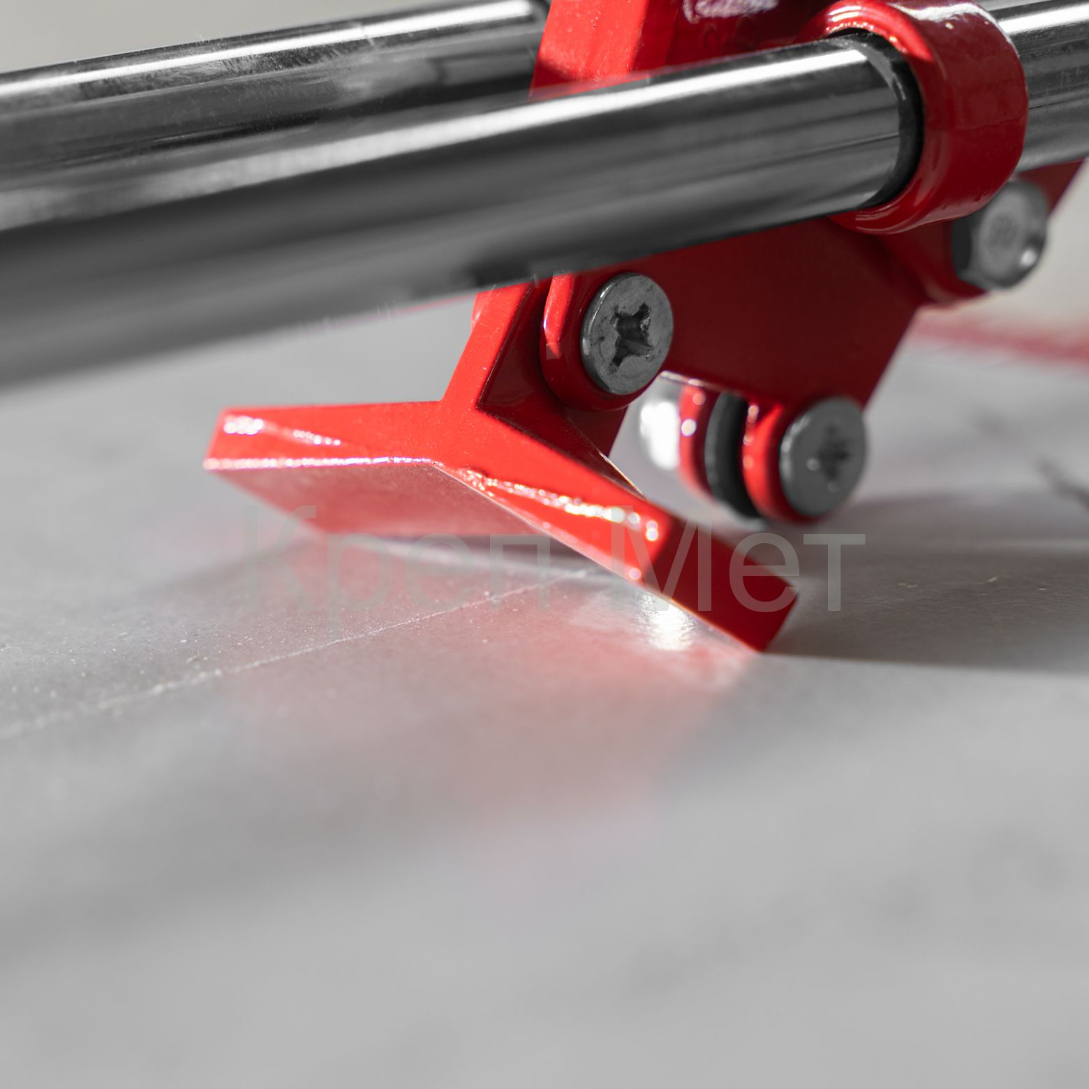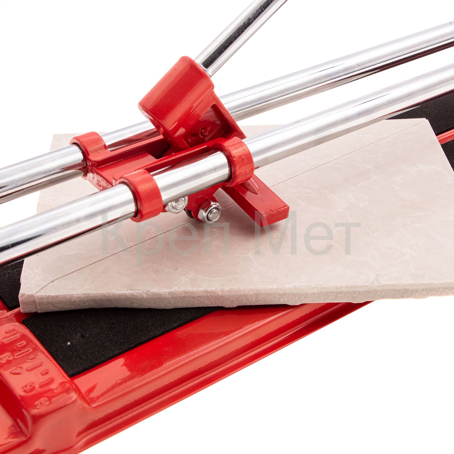 • Высокое качество работы — стальное основание обеспечивает устойчивость плиткореза, мягкие амортизирующие накладки предотвращают смещение плитки.