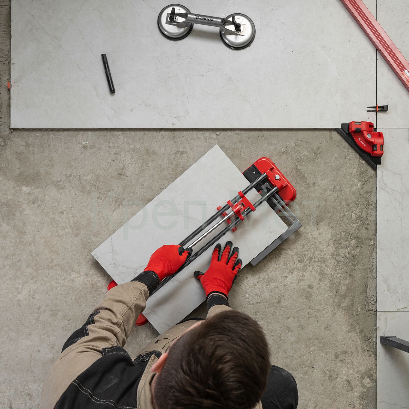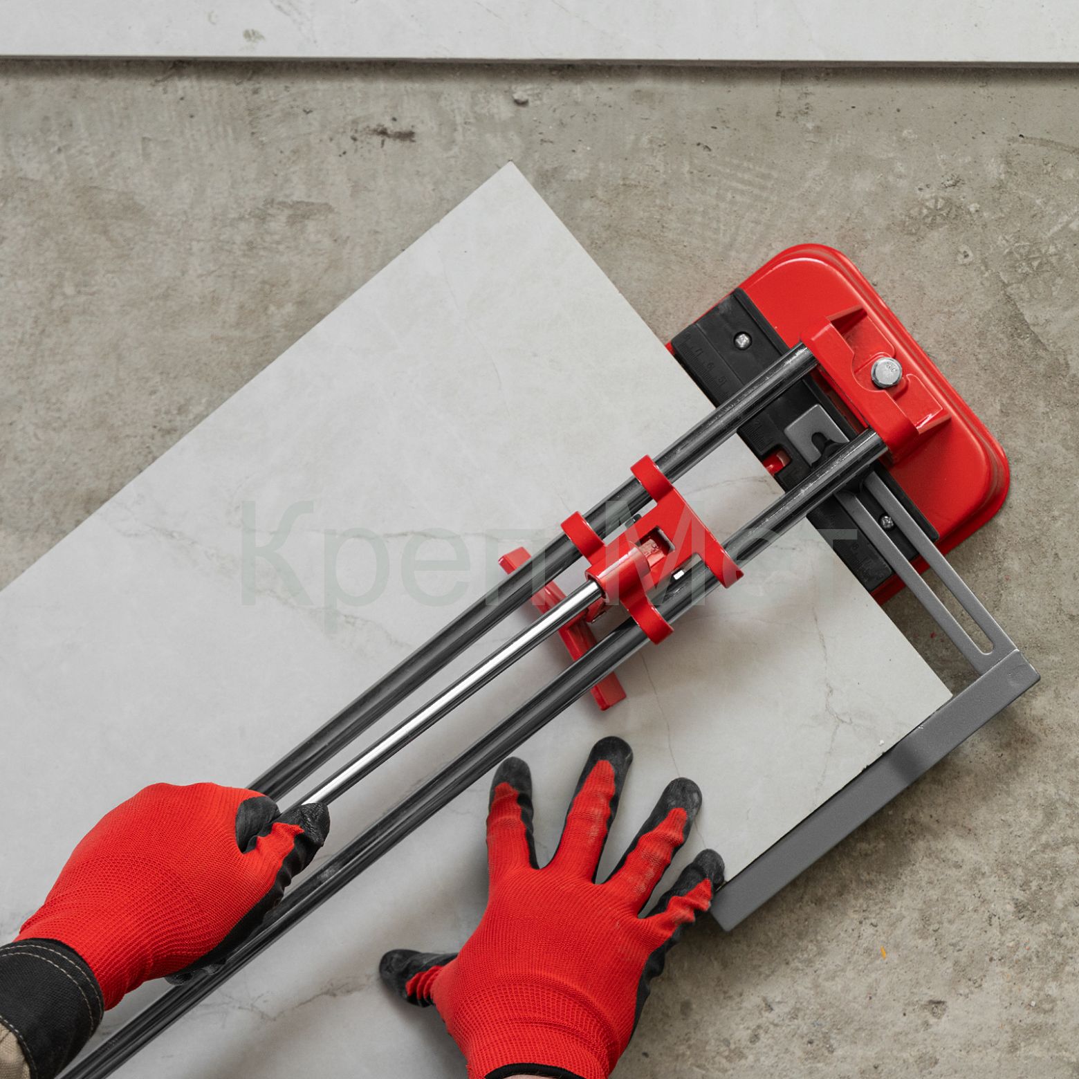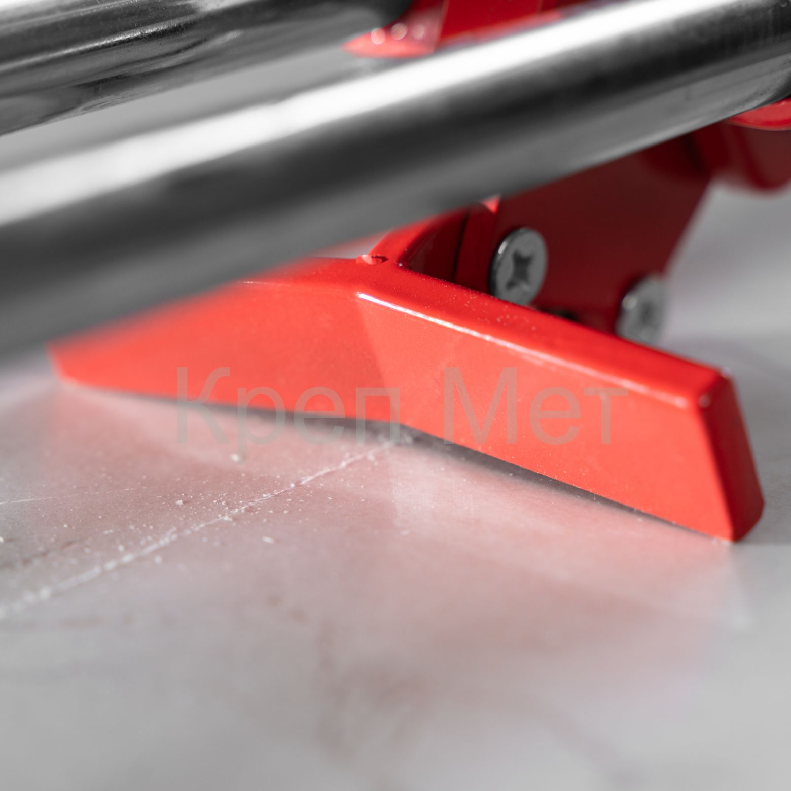 • Высокое качество работы — стальное основание обеспечивает устойчивость плиткореза, мягкие амортизирующие накладки предотвращают смещение плитки.