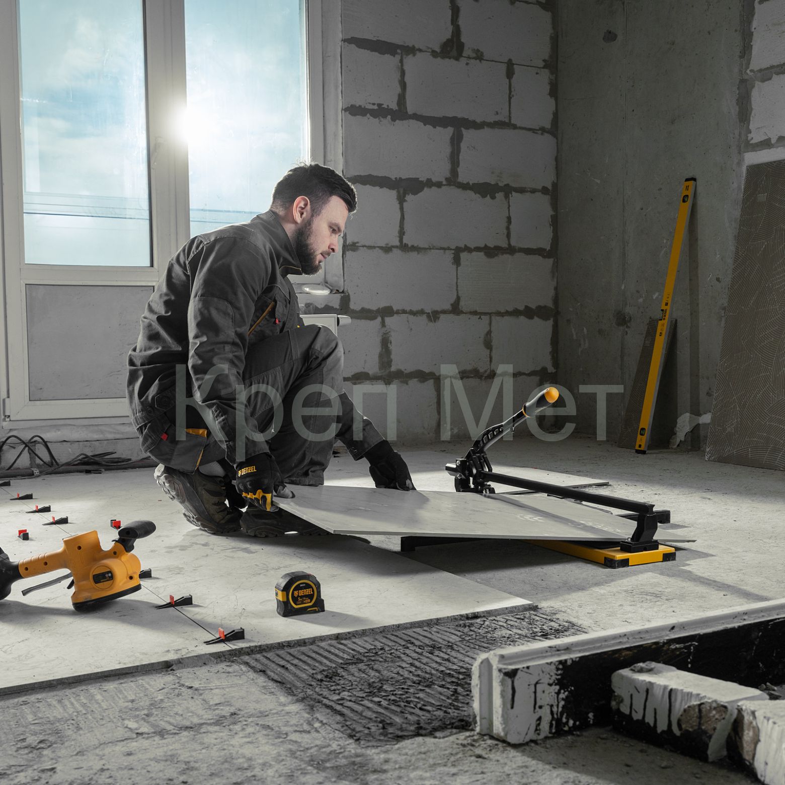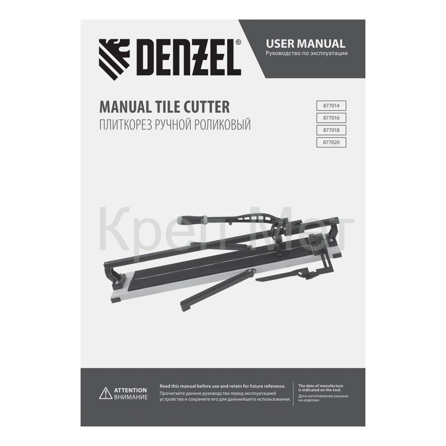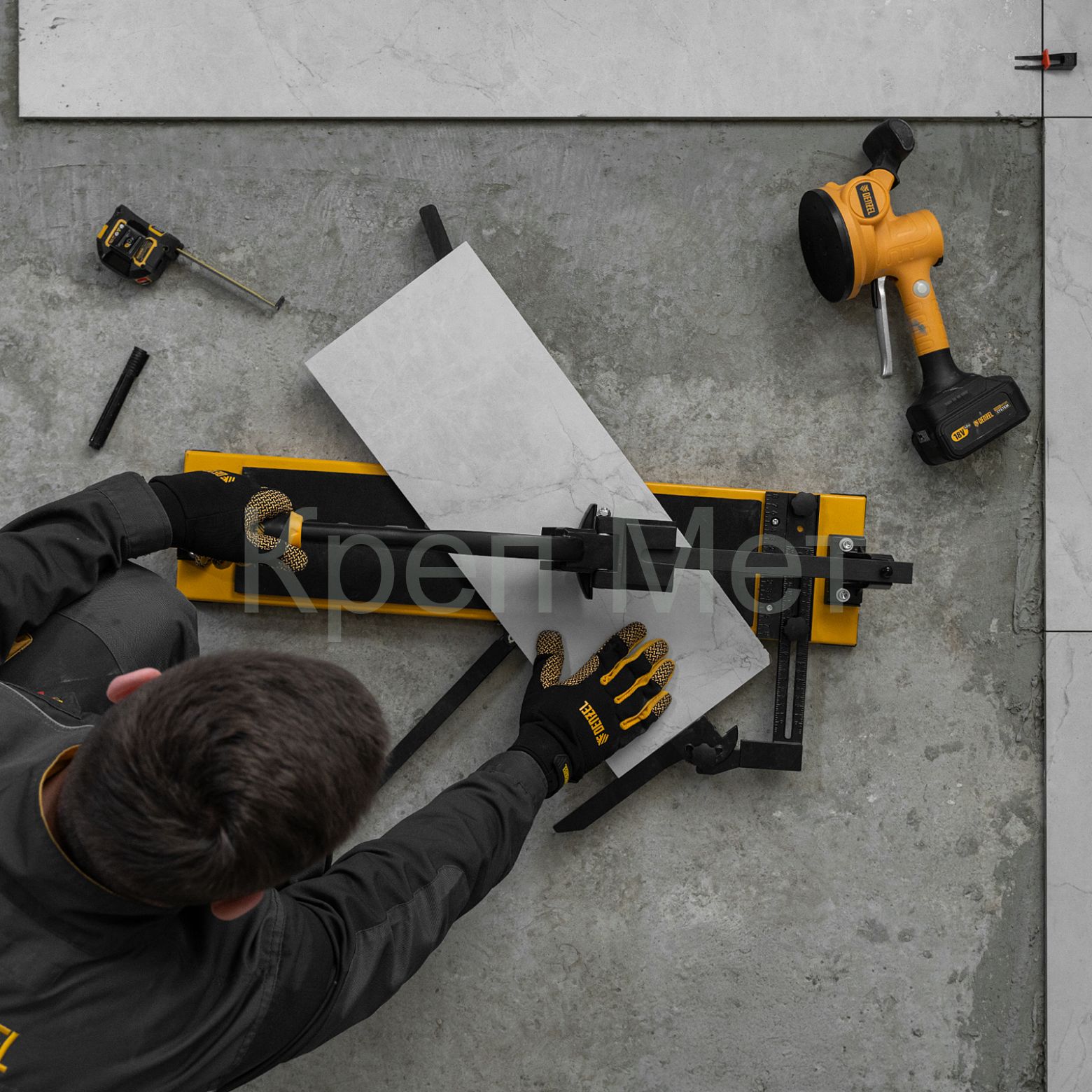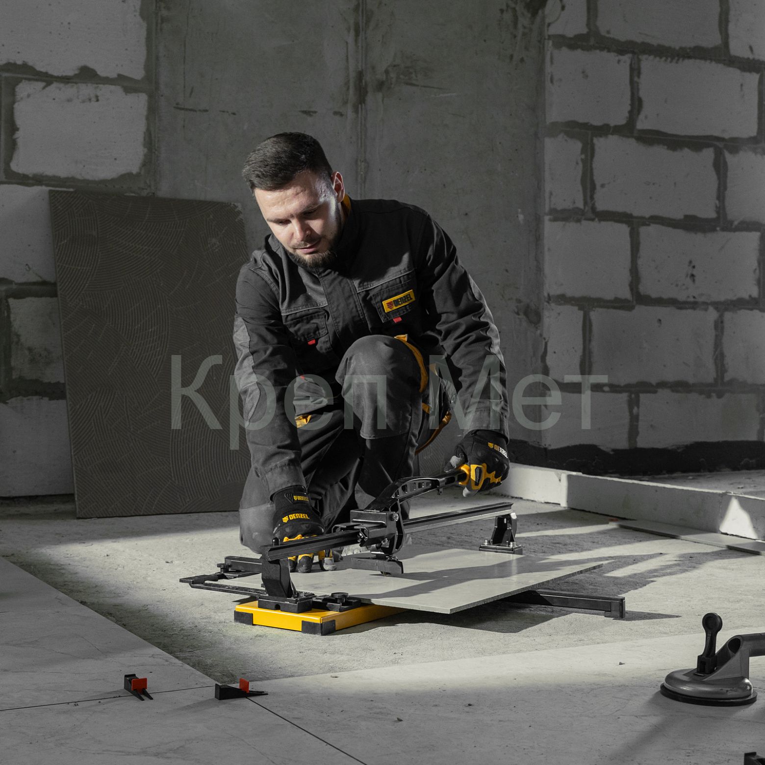 - Плиткорез рельсовый 600х16мм, каретка на подш., стальная станина, усил. рукоятка-пенал Denzel
