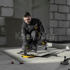 - Удобная работа — благодаря противоскользящим накладкам плиткорез не смещается даже на гладких поверхностях.