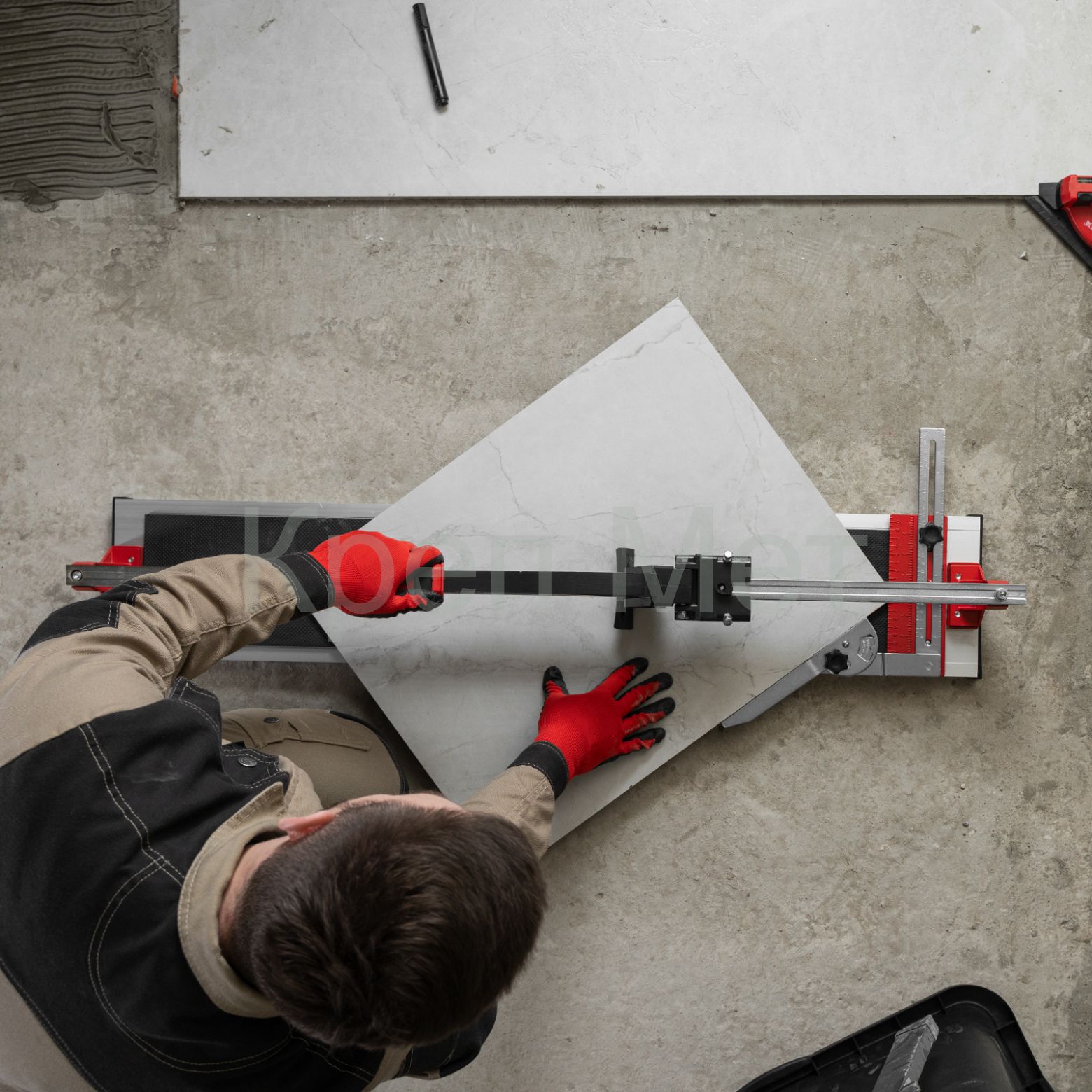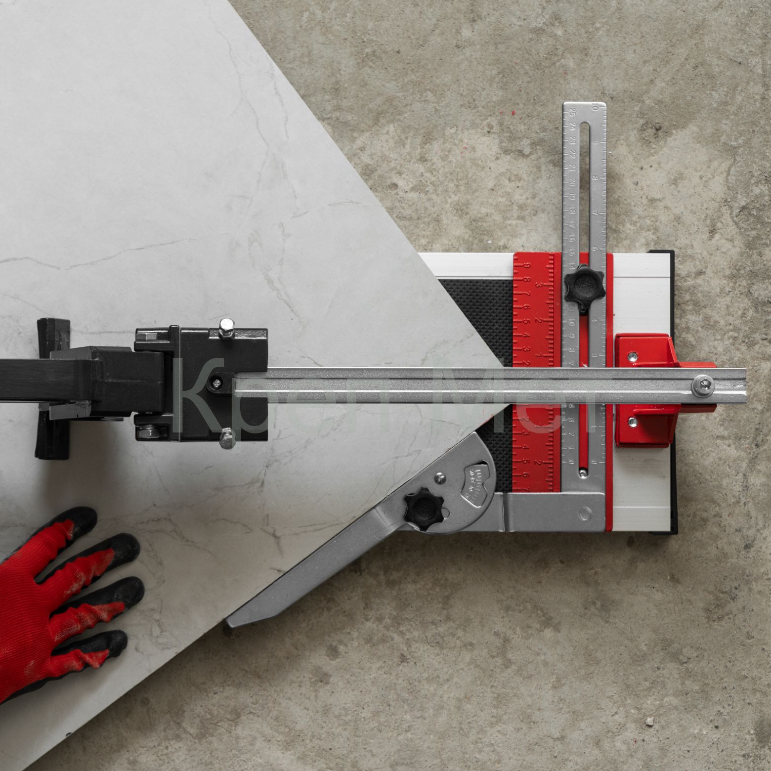 • Резка под углом до 45° — производителем предусмотрен поворотный угольник-угломер, обеспечивающий также дополнительную фиксацию плитки.