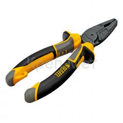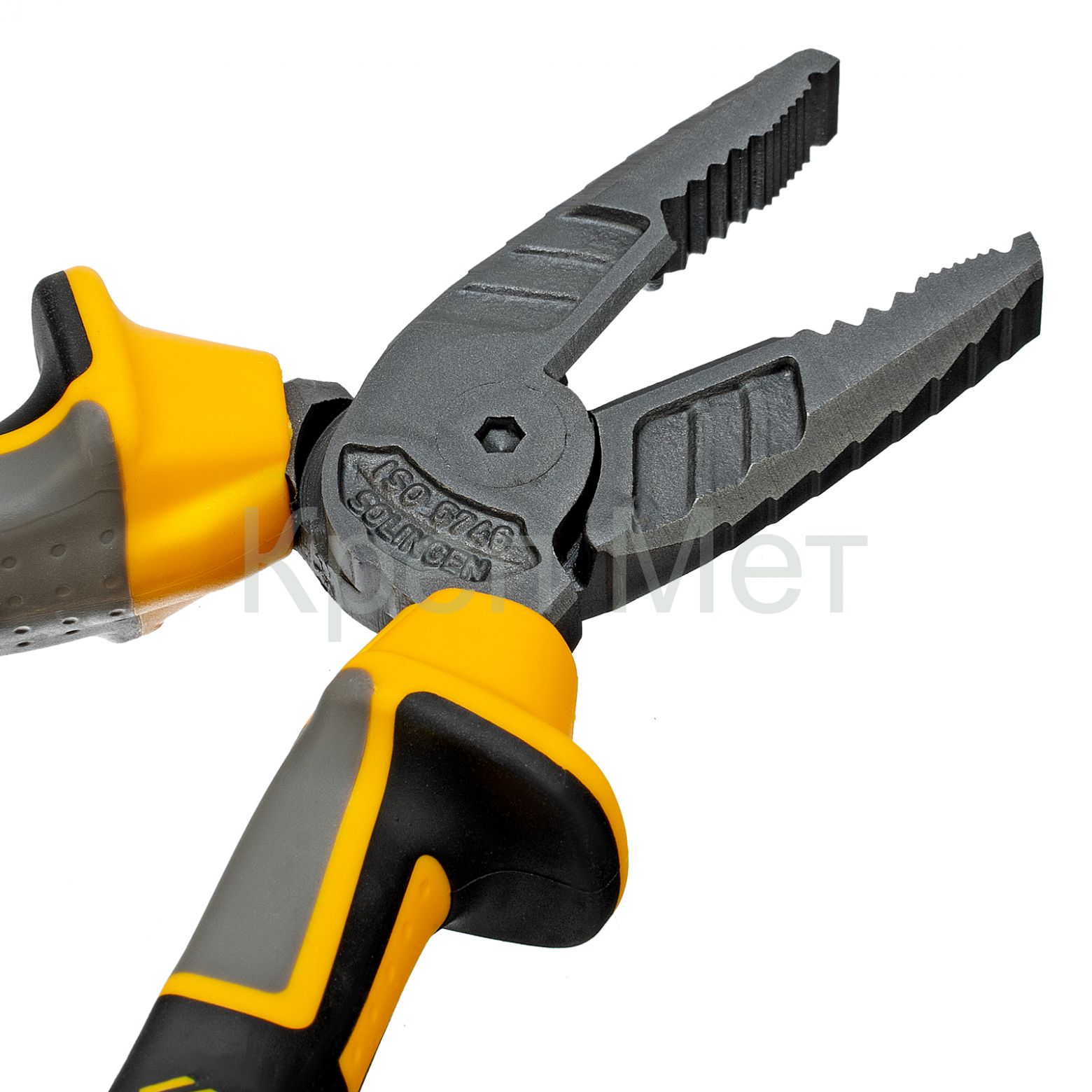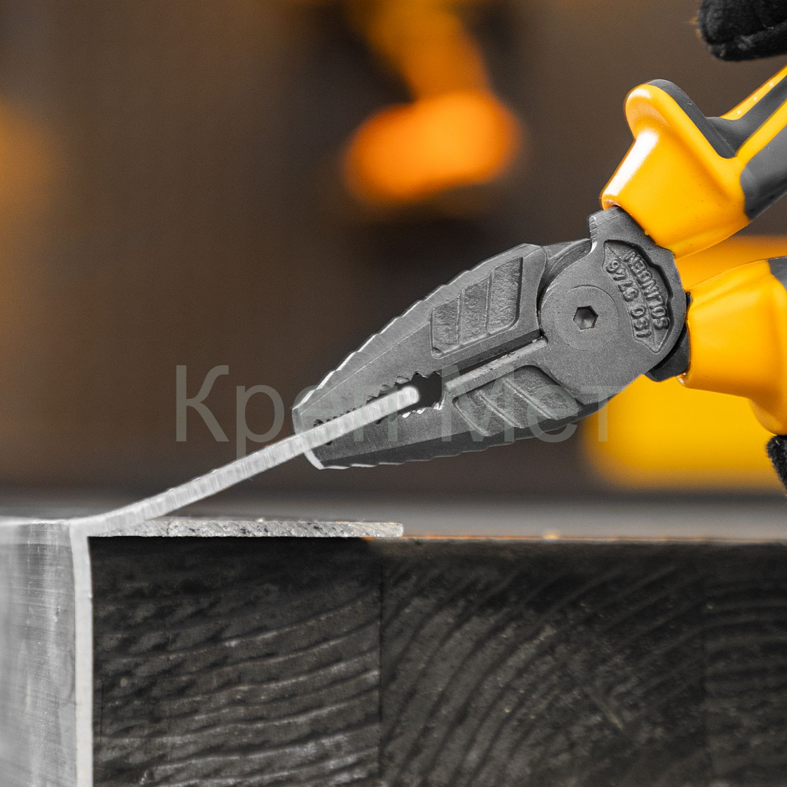 Комбинированные плоскогубцы Denzel 17080 длиной 165 мм, с трехкомпонентными рукоятками, используются для зажима и удержания деталей, сгибания металлических листов. Позволяют также перекусывать мягкую проволоку (алюминиевую, медную, с пределом прочности 220 Н/мм2) диаметром до 4 мм, проволоку средней жесткости и гвозди (750 Н/мм2) диаметром до 3,1 мм, а также жесткую (1800 Н/мм2) толщиной до 2 мм. Имеют внутренние грани специальной формы, предназначенные для использования инструмента в качестве гаечного ключа. Губки с насечками надежно удерживают заготовки. Плоскогубцы пригодятся профессионалу и частному мастеру при проведении слесарных, ремонтных и сборочных работ.