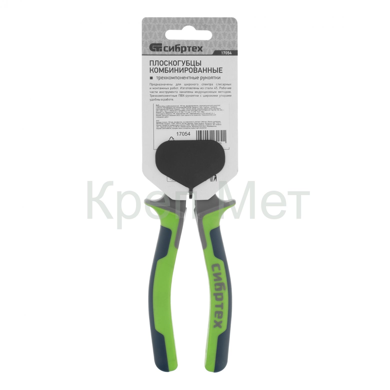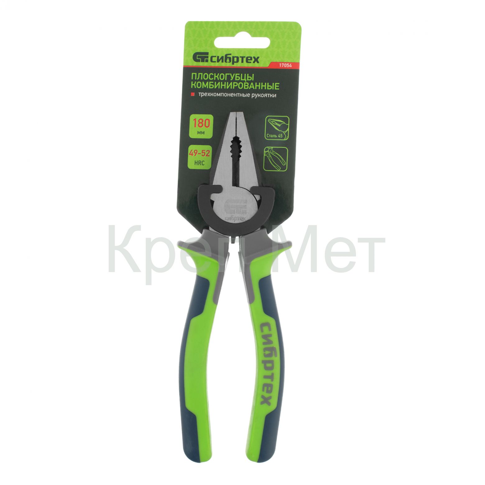 - Плоскогубцы комбинированные, 180 мм, фосфатирование, трехкомпонентные рукоятки Сибртех