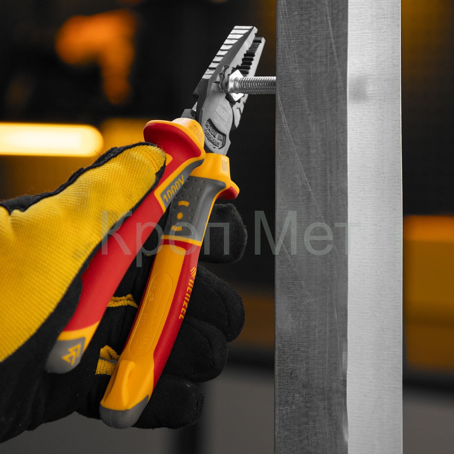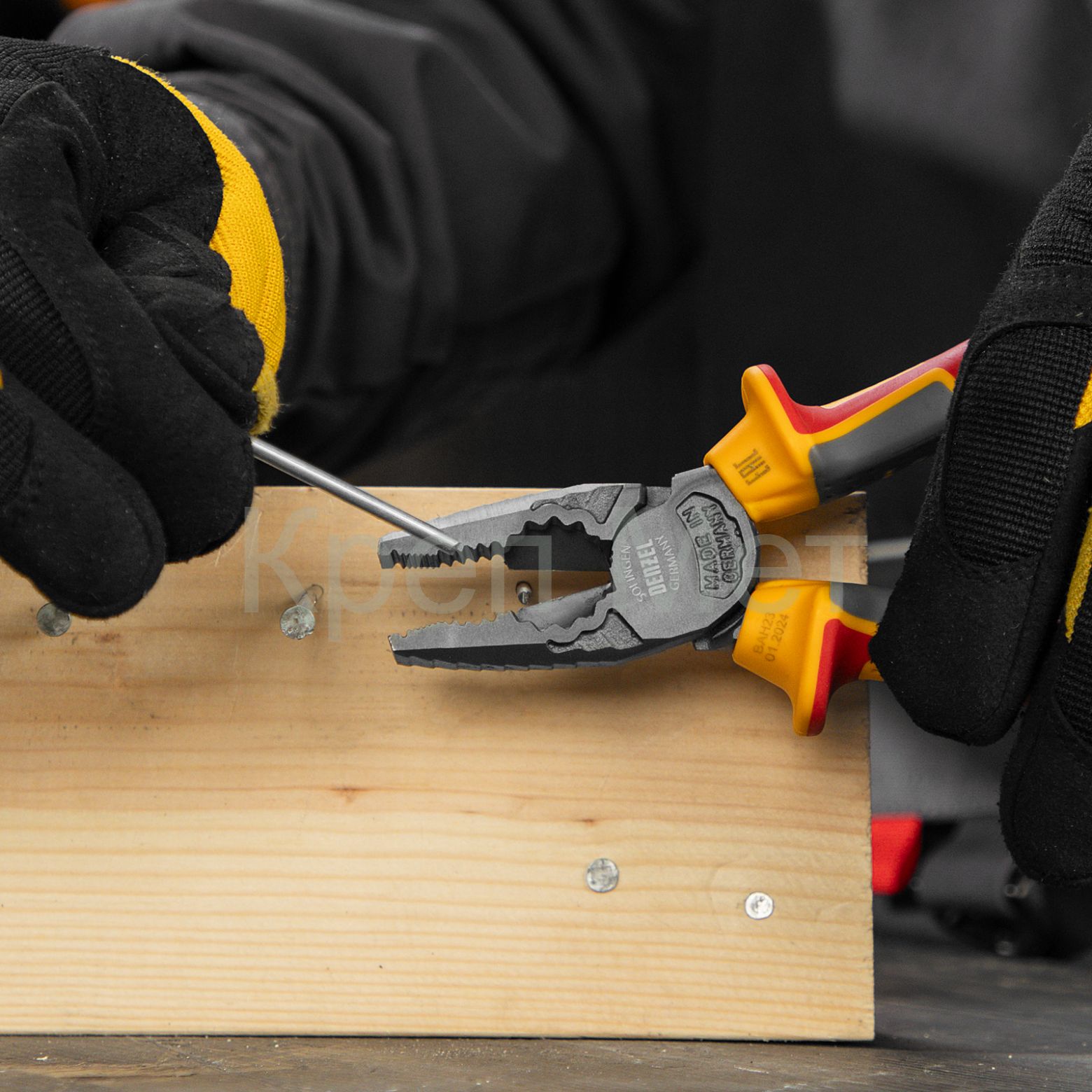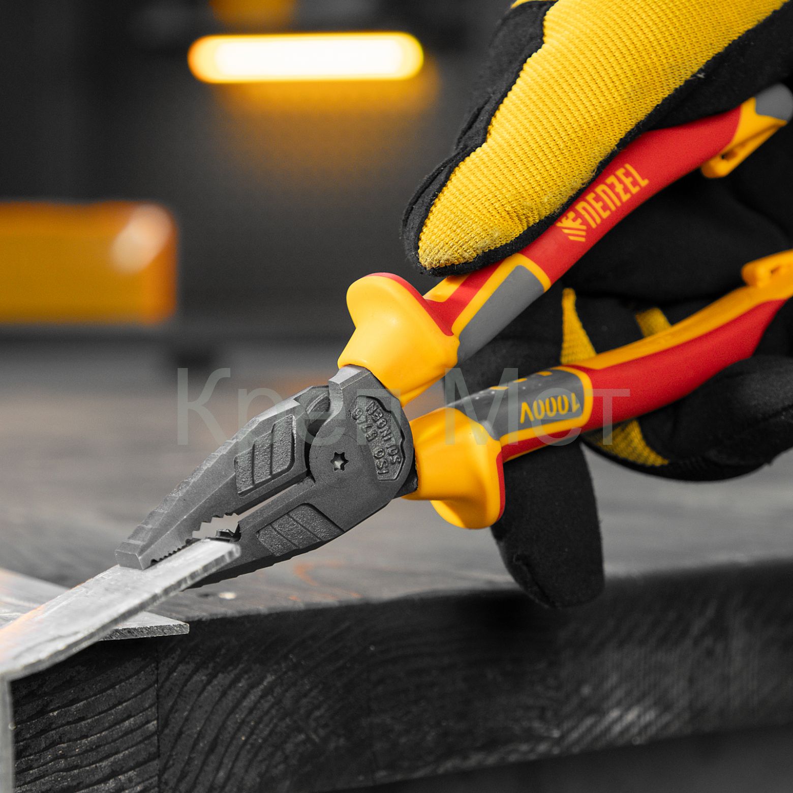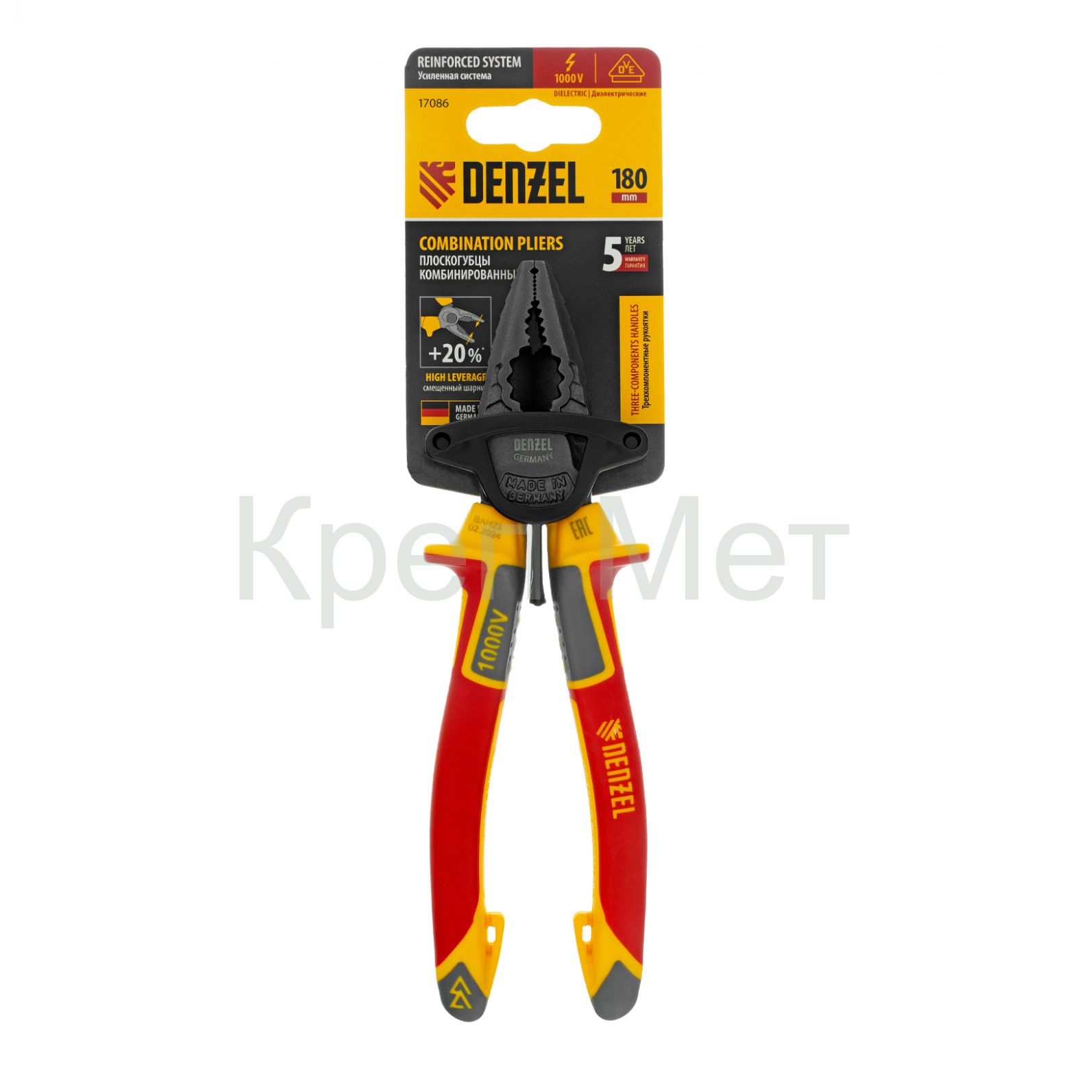 - Плоскогубцы комбинированные, диэлектрические трехкомпонентные рукоятки до 1000 В, 180 мм Denzel