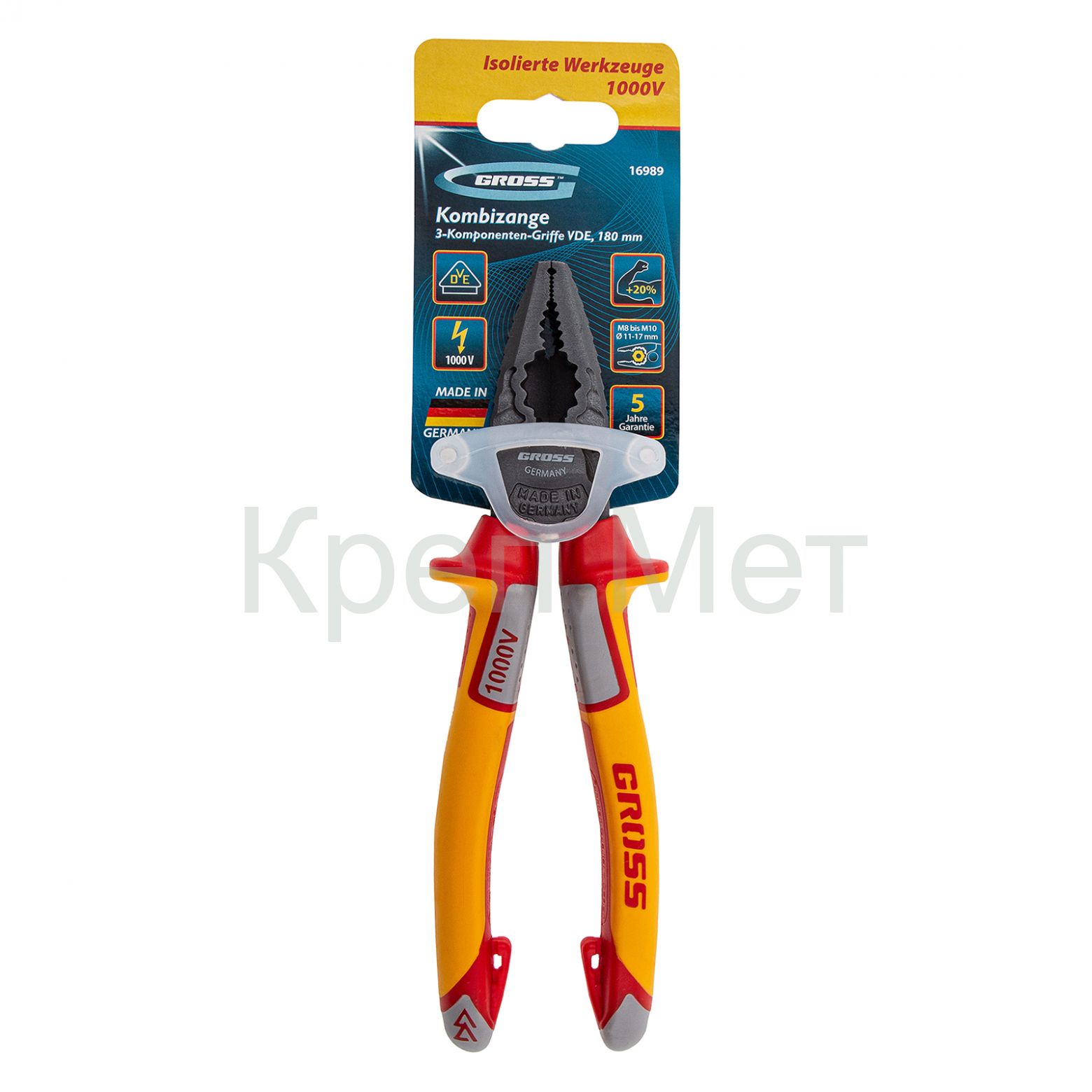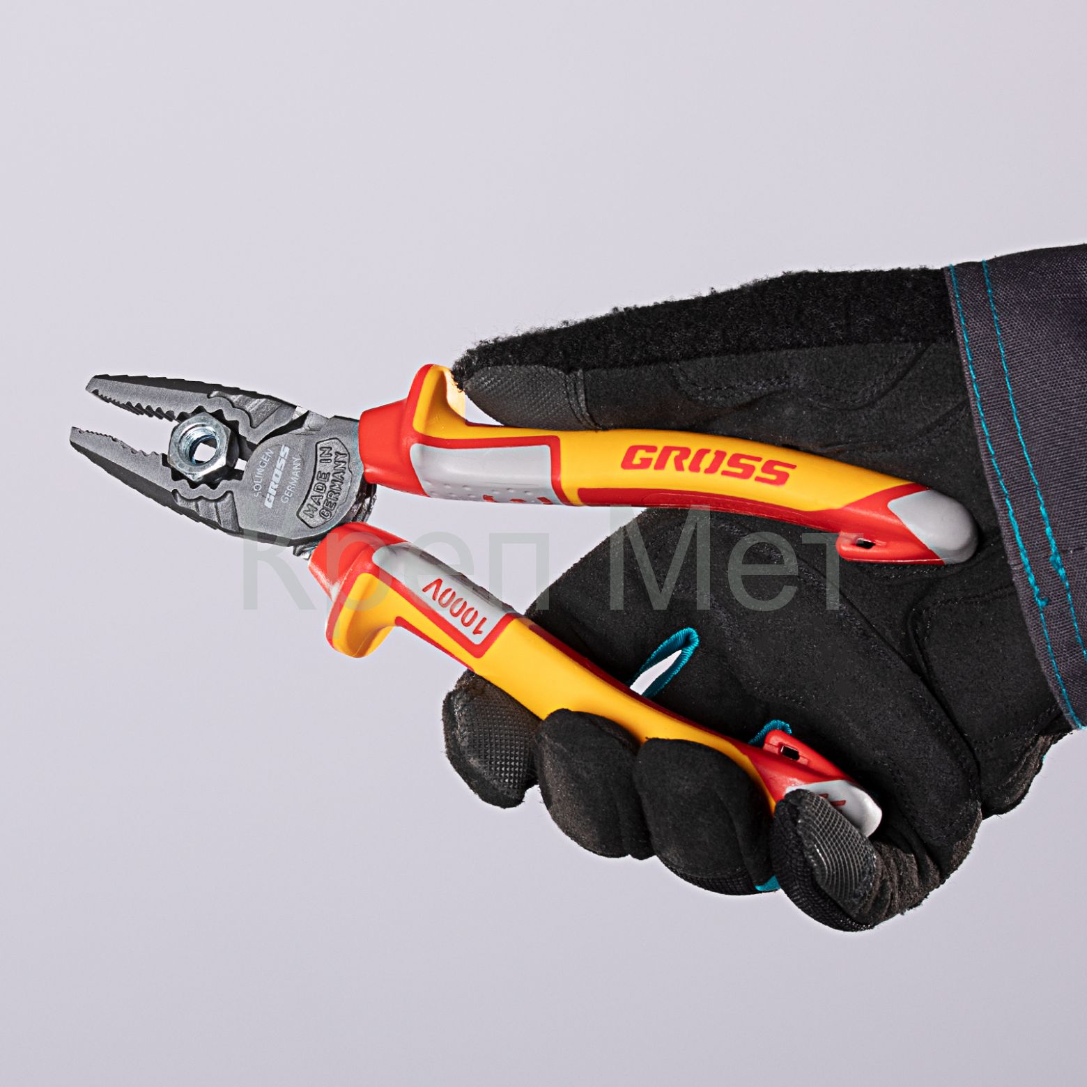 - Плоскогубцы комбинированные, диэлектрические трехкомпонентные рукоятки до 1000 В, 180 мм Gross