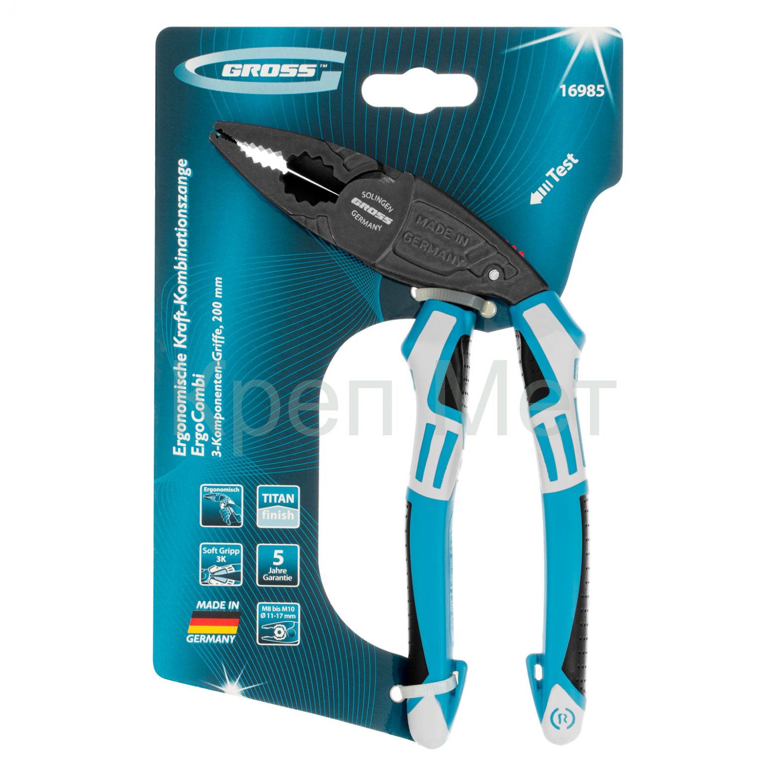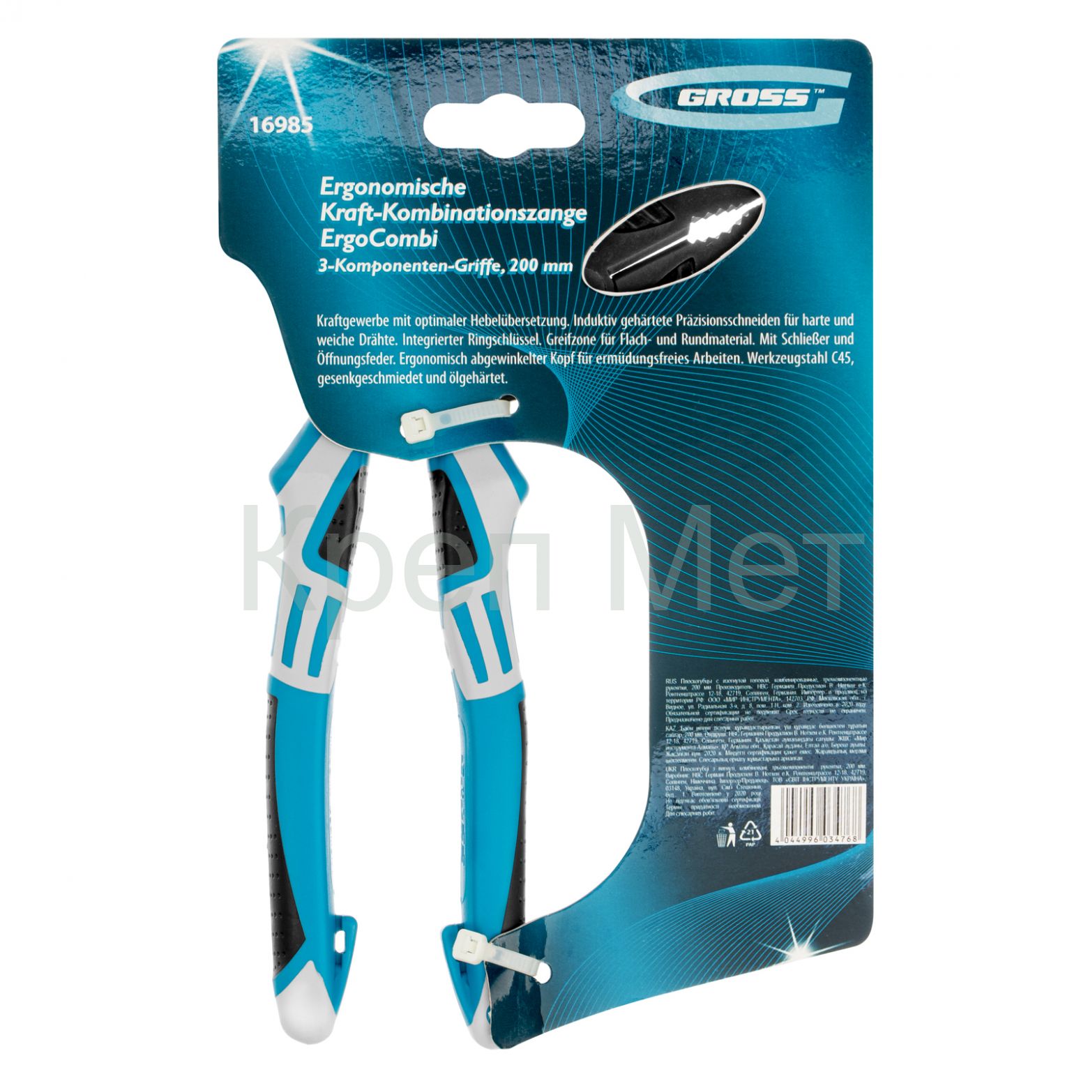 Плоскогубцы комбинированные с изогнутой головой, трехкомпонентные рукоятки, 200 мм Gross