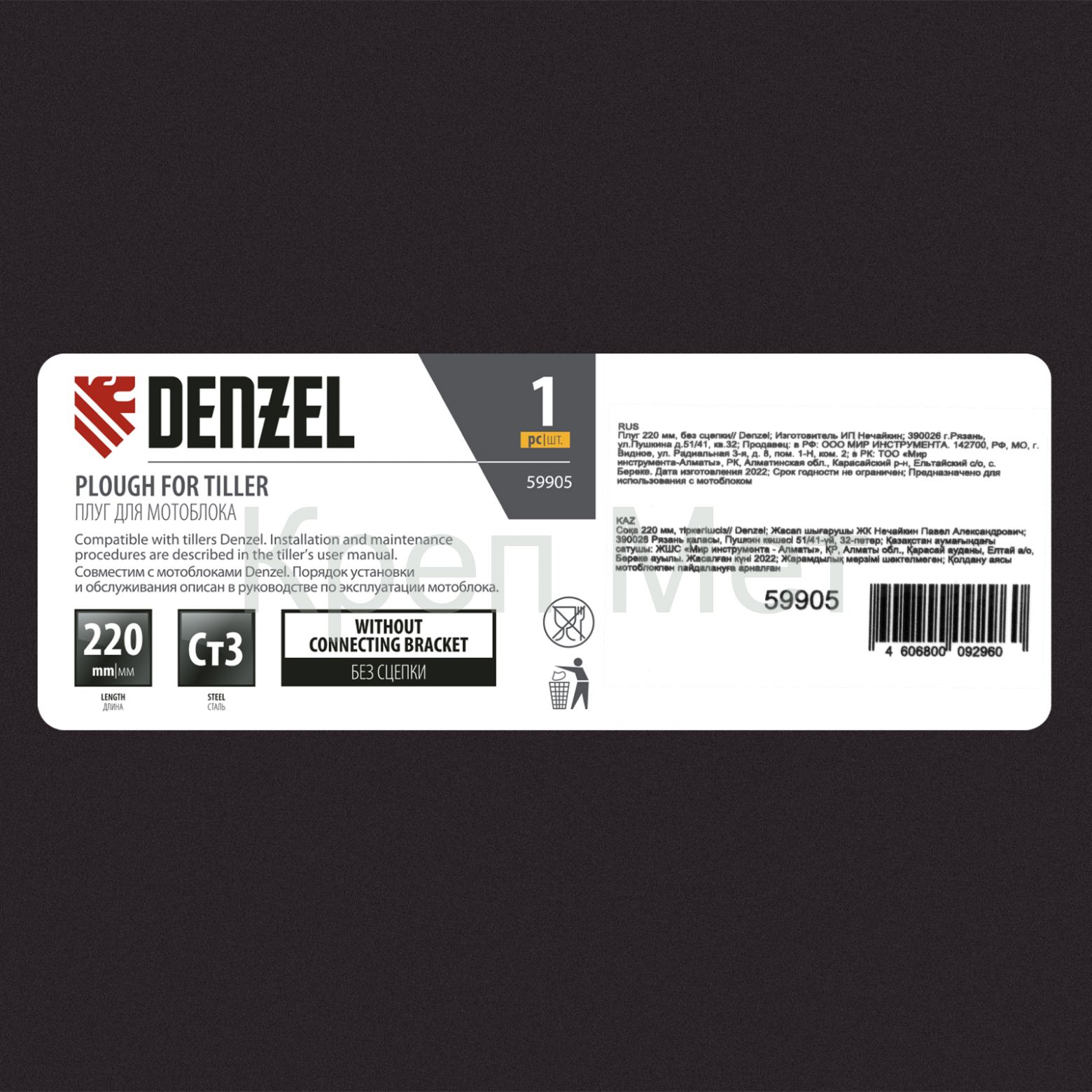 Плуг Denzel 59905 с высотой захвата 220 мм — навесное оборудование для мотоблока (поставляется без сцепки). Предназначен для вспахивания и рыхления любых видов грунта. Позволяет подготовить почву к посадкам. Пригодится владельцам загородных участков и фермерских хозяйств.