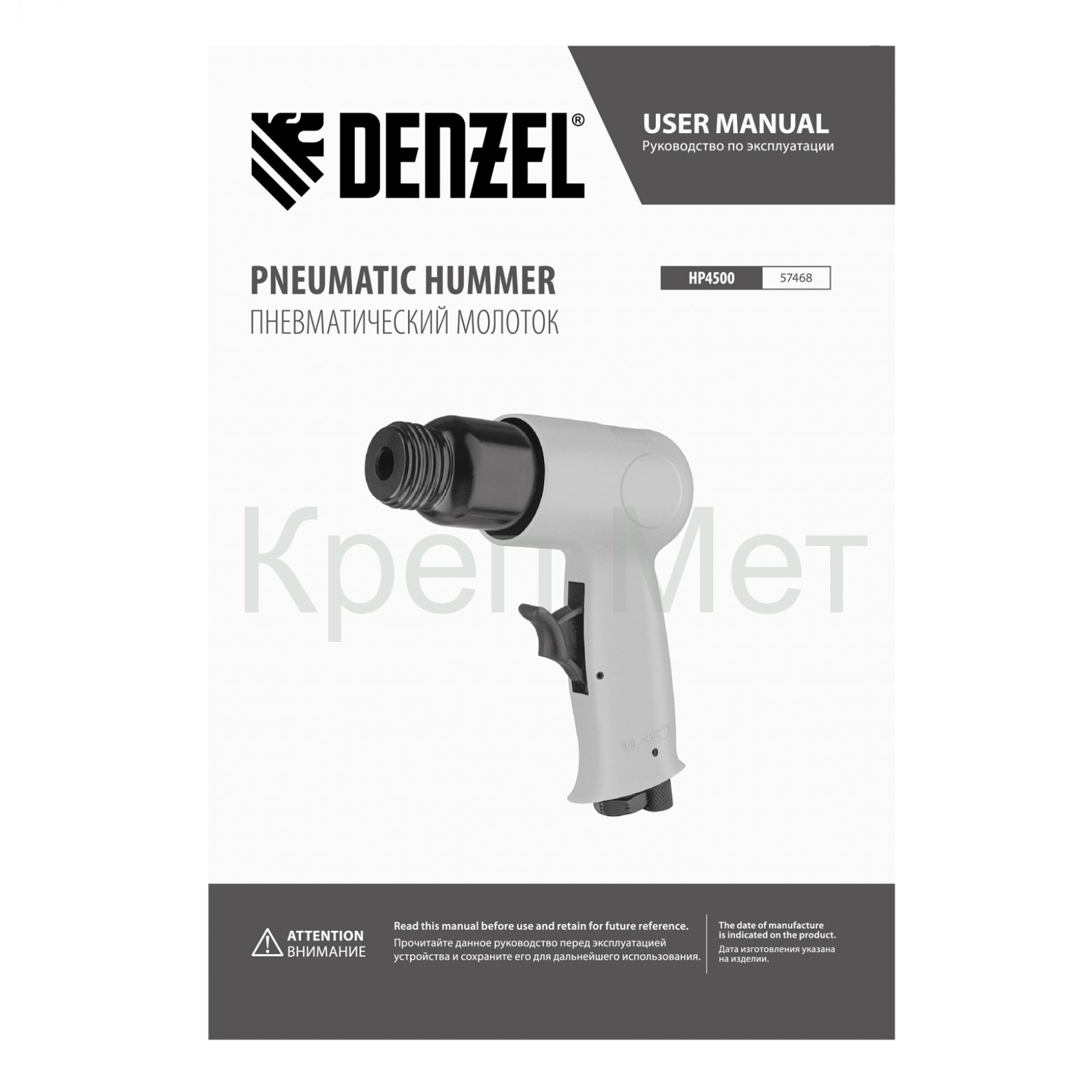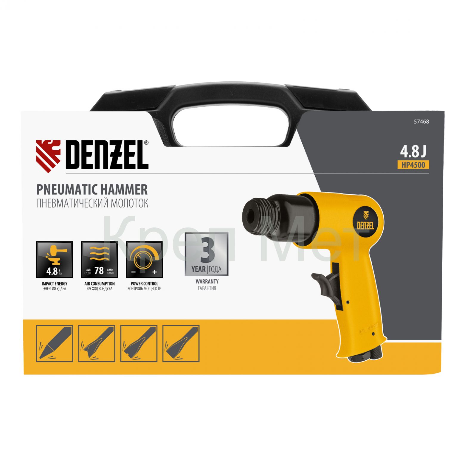 - Пневматический молоток НР4500 + набор насадок, 113 л/мин, 4500 уд/мин Denzel