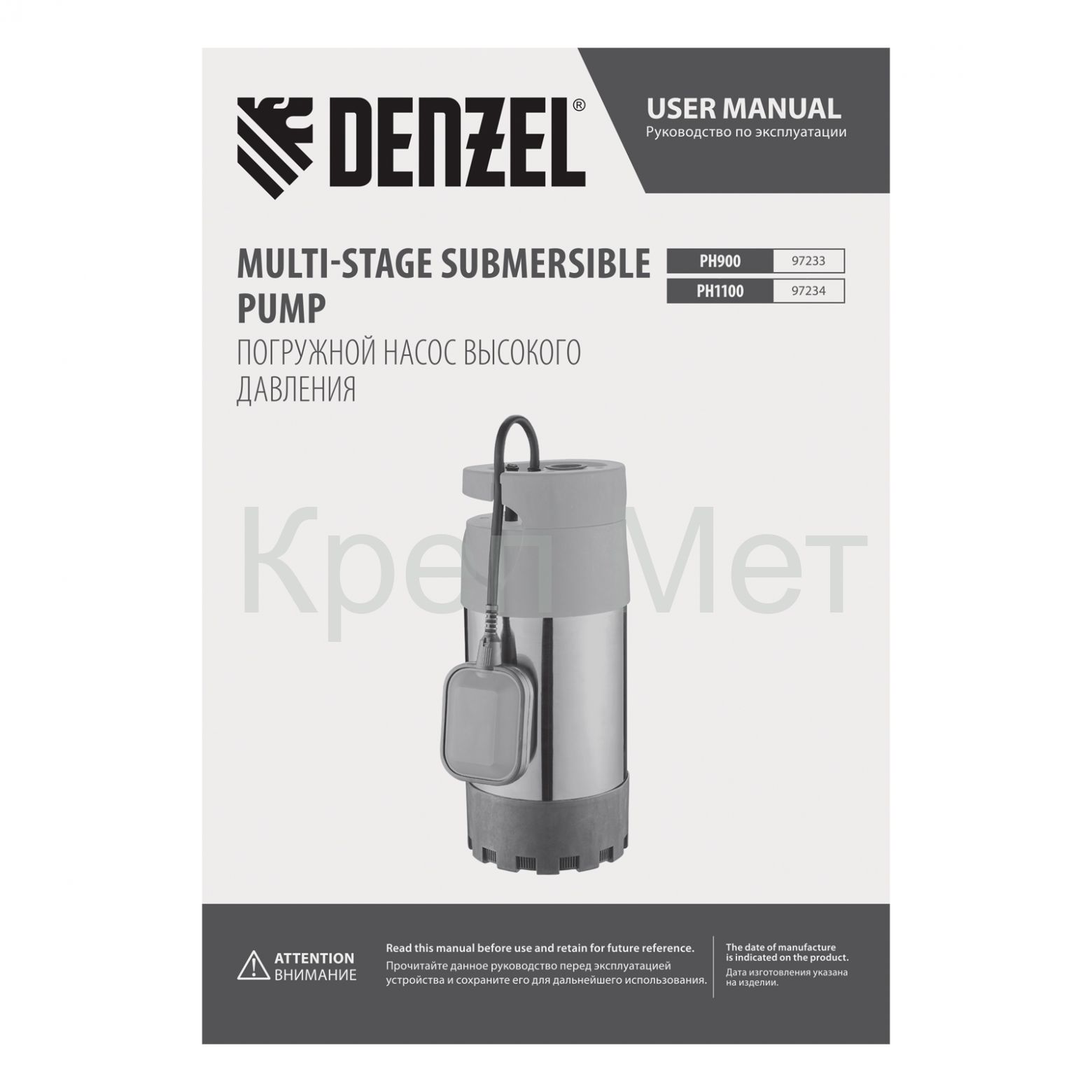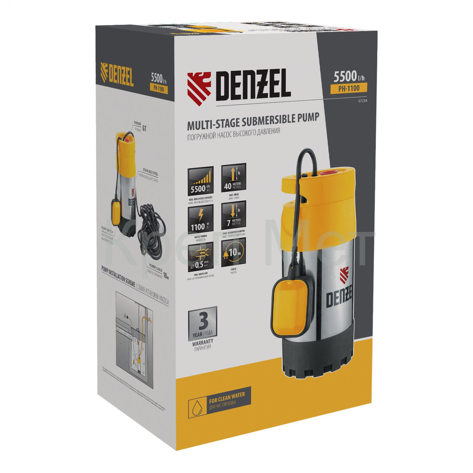 - Погружной насос высокого давления PH1100, 1100Вт, подъем 40м, 5500 л/ч Denzel