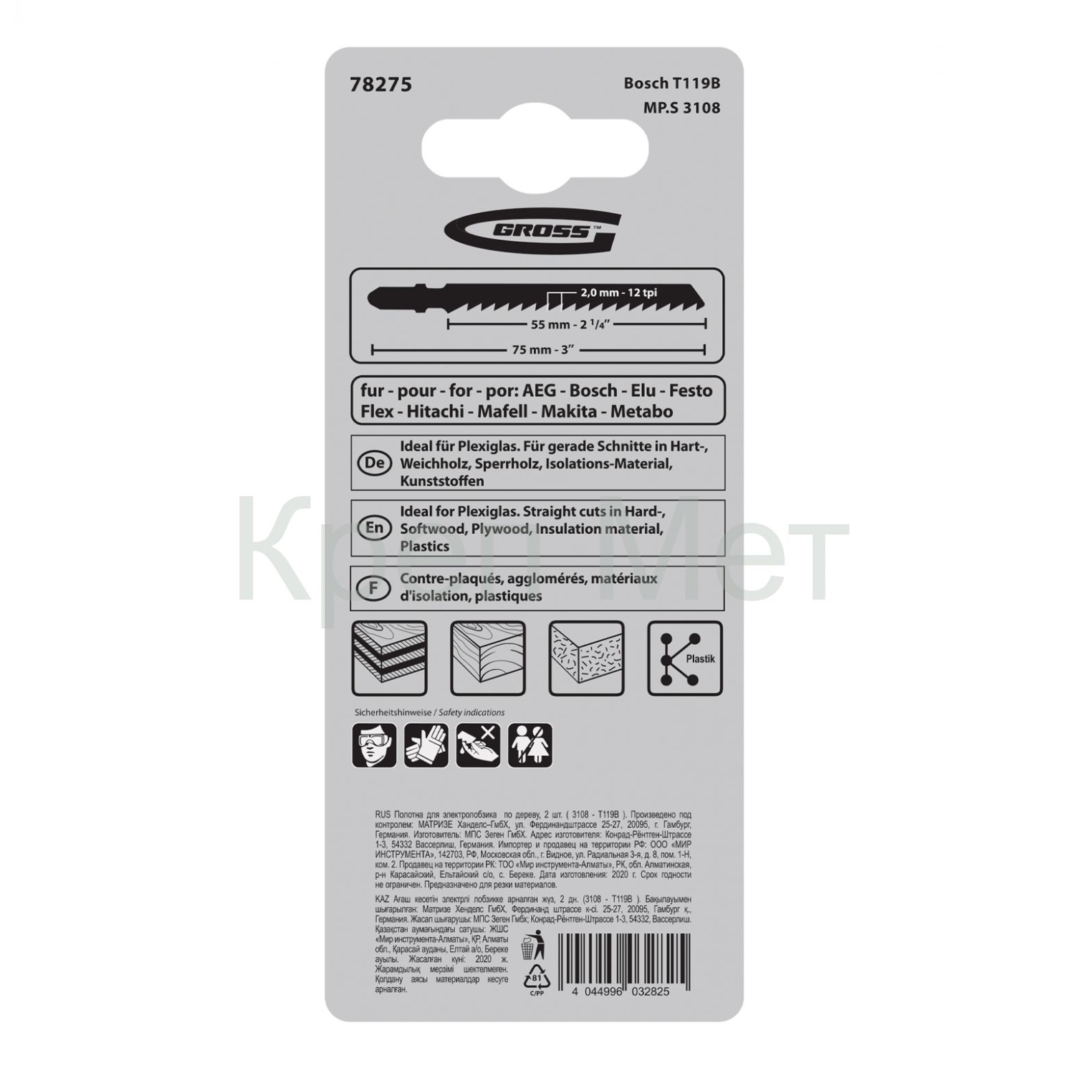 Полотна для электролобзика по дереву, 2 шт, ( 3108-T119B ) Gross