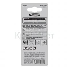 Полотна для электролобзика по дереву Gross 78275, 2 шт. (3108 - T119B), используются для работы с древесиной ДСП, ДВП, МДФ, композитных материалов на основе древесины и т.д. Они рассчитаны на профессиональное применение и пригодятся при проведении строительных и ремонтных работ. За счет длины 75 мм и толщины 1 мм полотна способны распилить заготовки толщиной 4-30 мм.