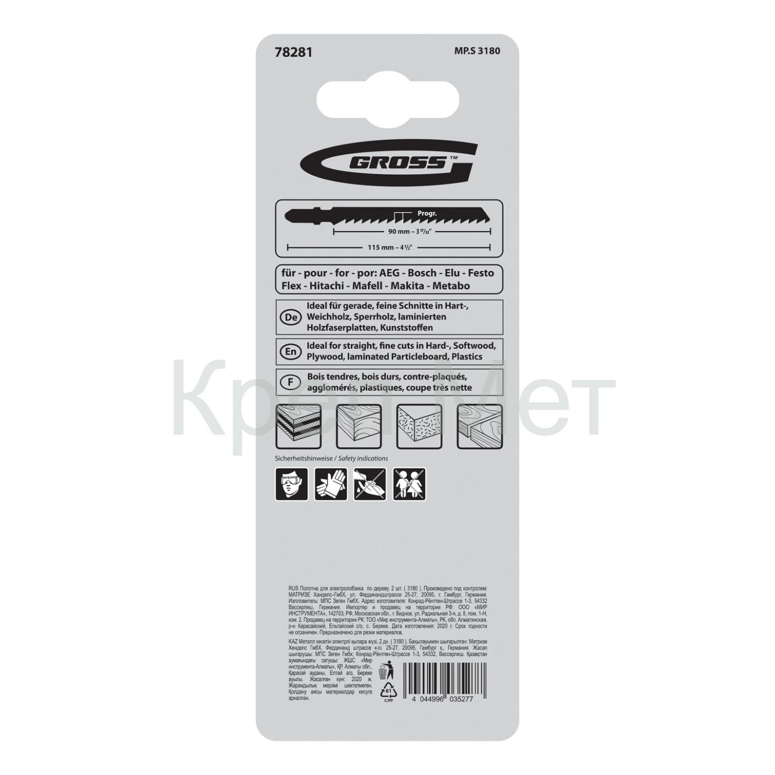 Полотна для электролобзика по дереву, 2 шт, ( 3180 ) Gross