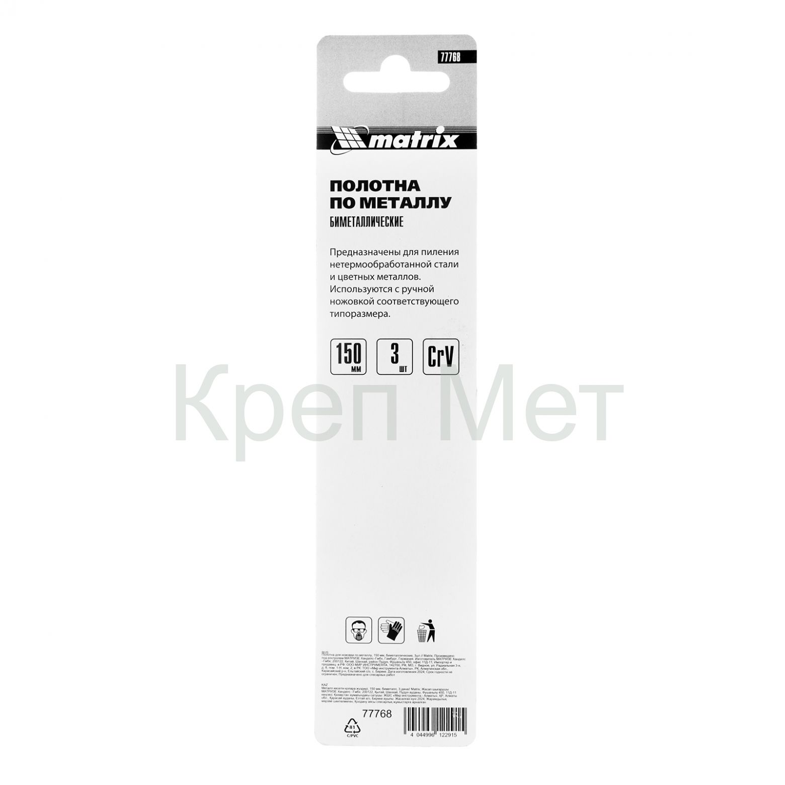 - Полотна для ножовки по металлу, 150 мм, биметаллические, 3 шт Matrix