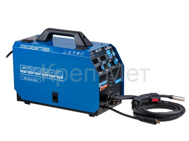 Аппарат оснащен встроенной горелкой MIG 2 метра и возможностью смены полярности для сварки проволокой без газа (FLUX).