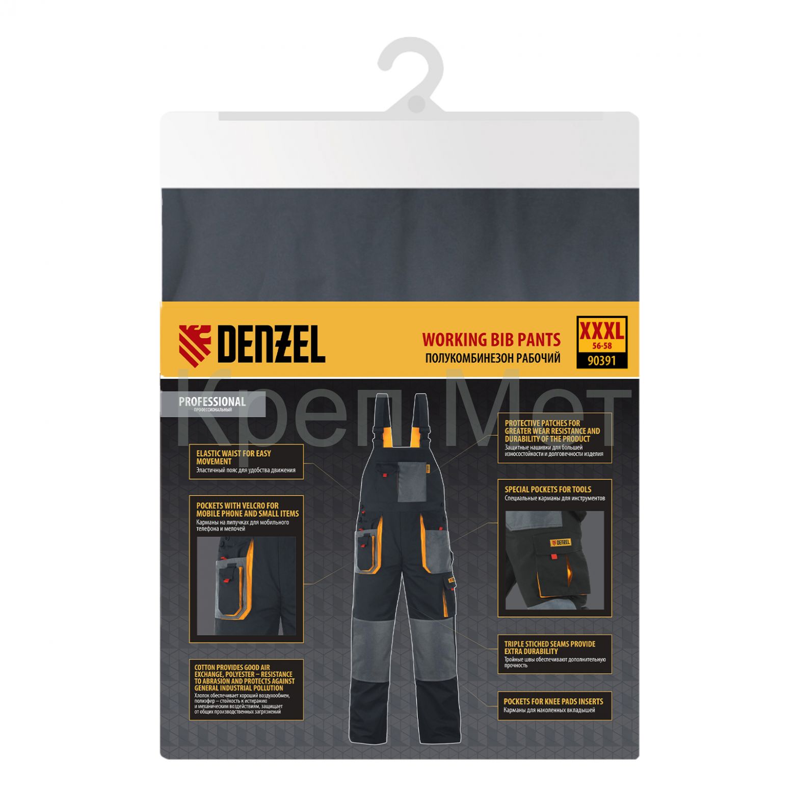 - Полукомбинезон профессиональный рабочий, 65% полиэстер 35% хлопок, XXXL Denzel
