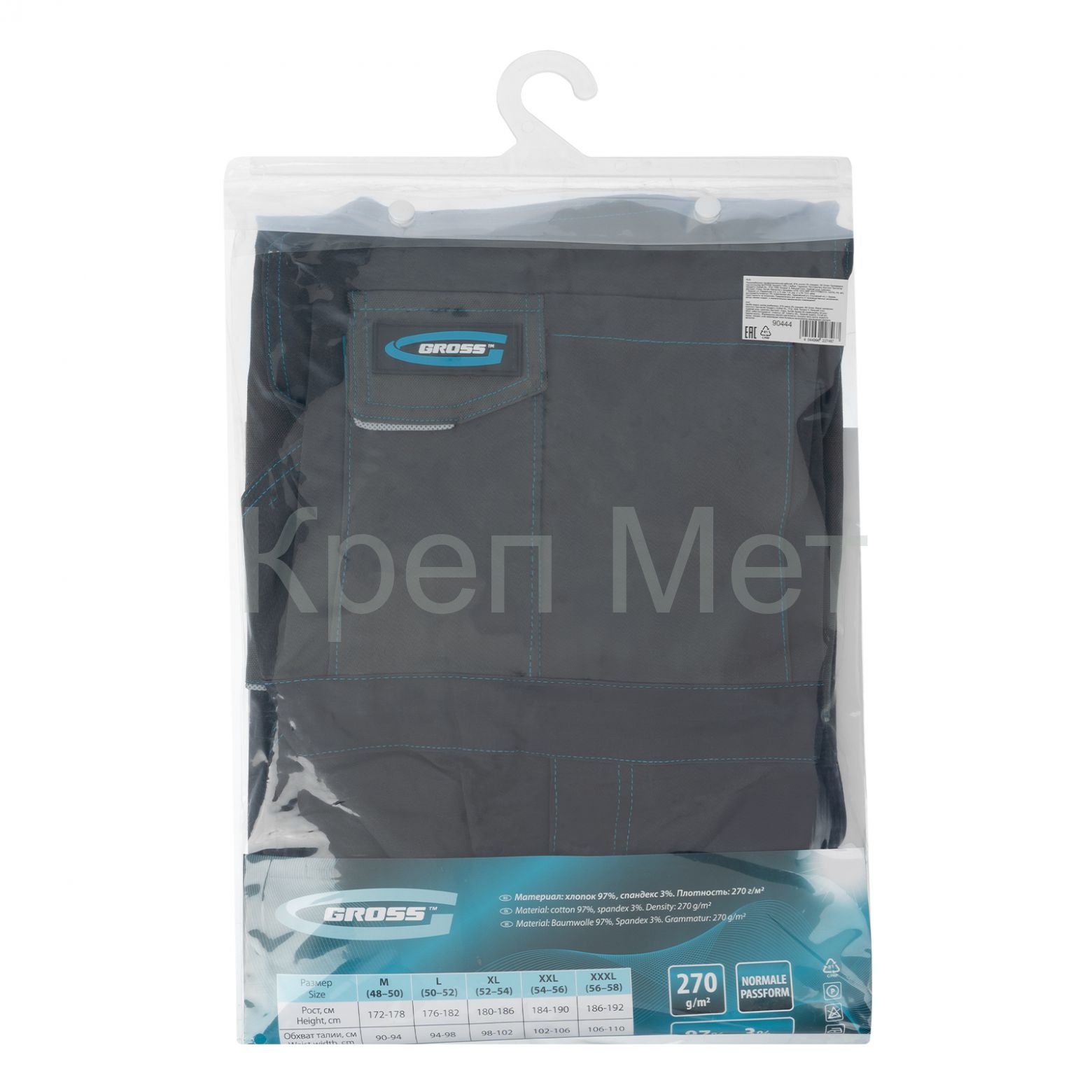 - Полукомбинезон профессиональный рабочий, 97% хлопок 3% спандекс, XL Gross