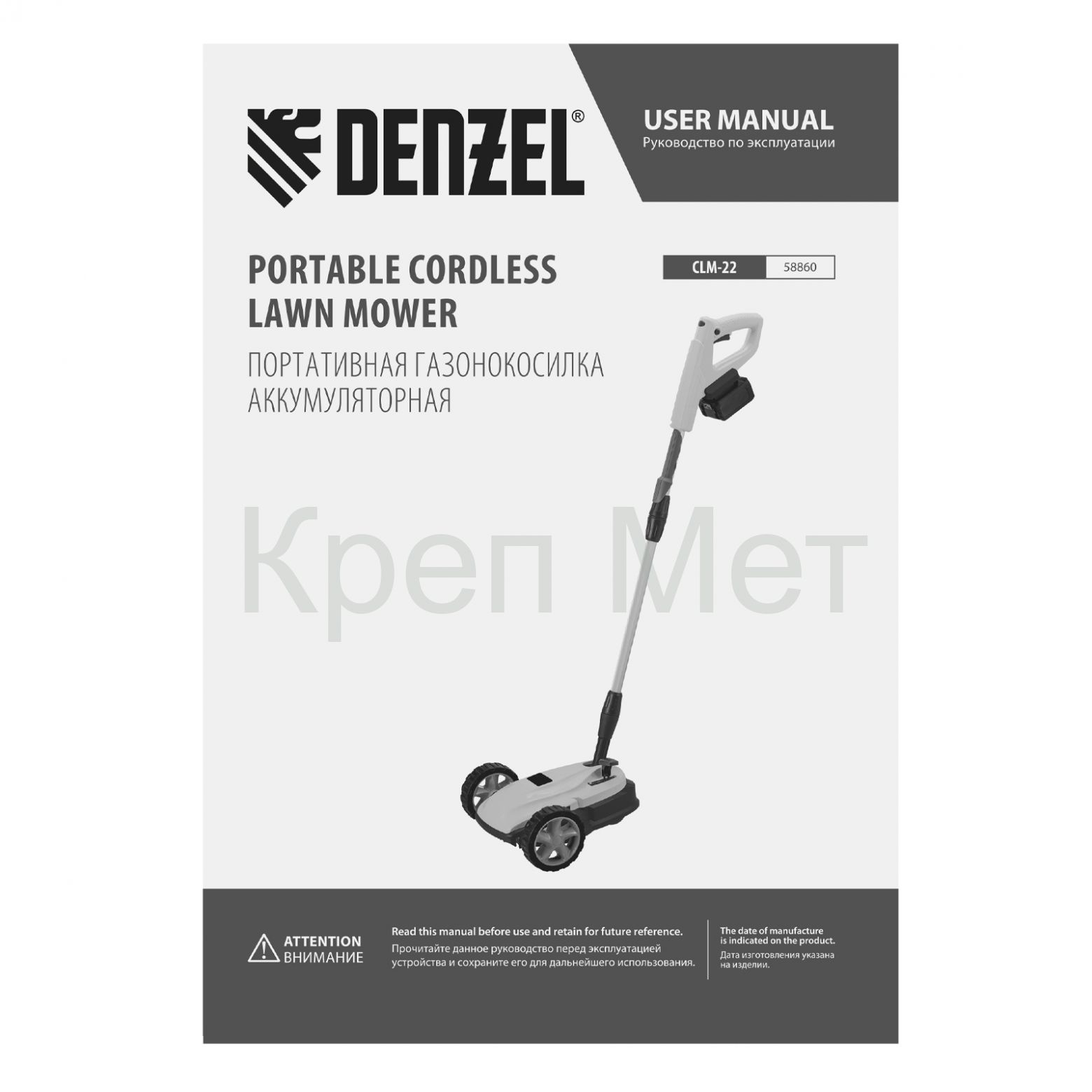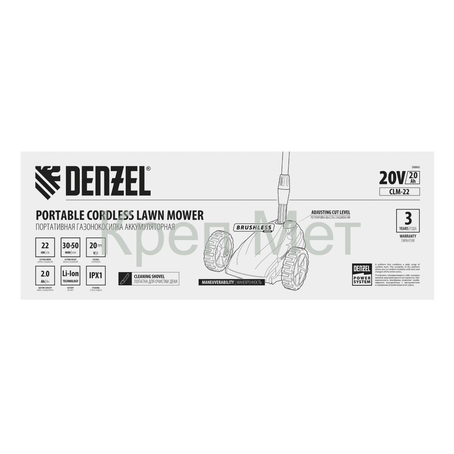 - Портативная аккумуляторная газонокосилка CLM-22, Li-ion, 20В, 220 мм // Denzel