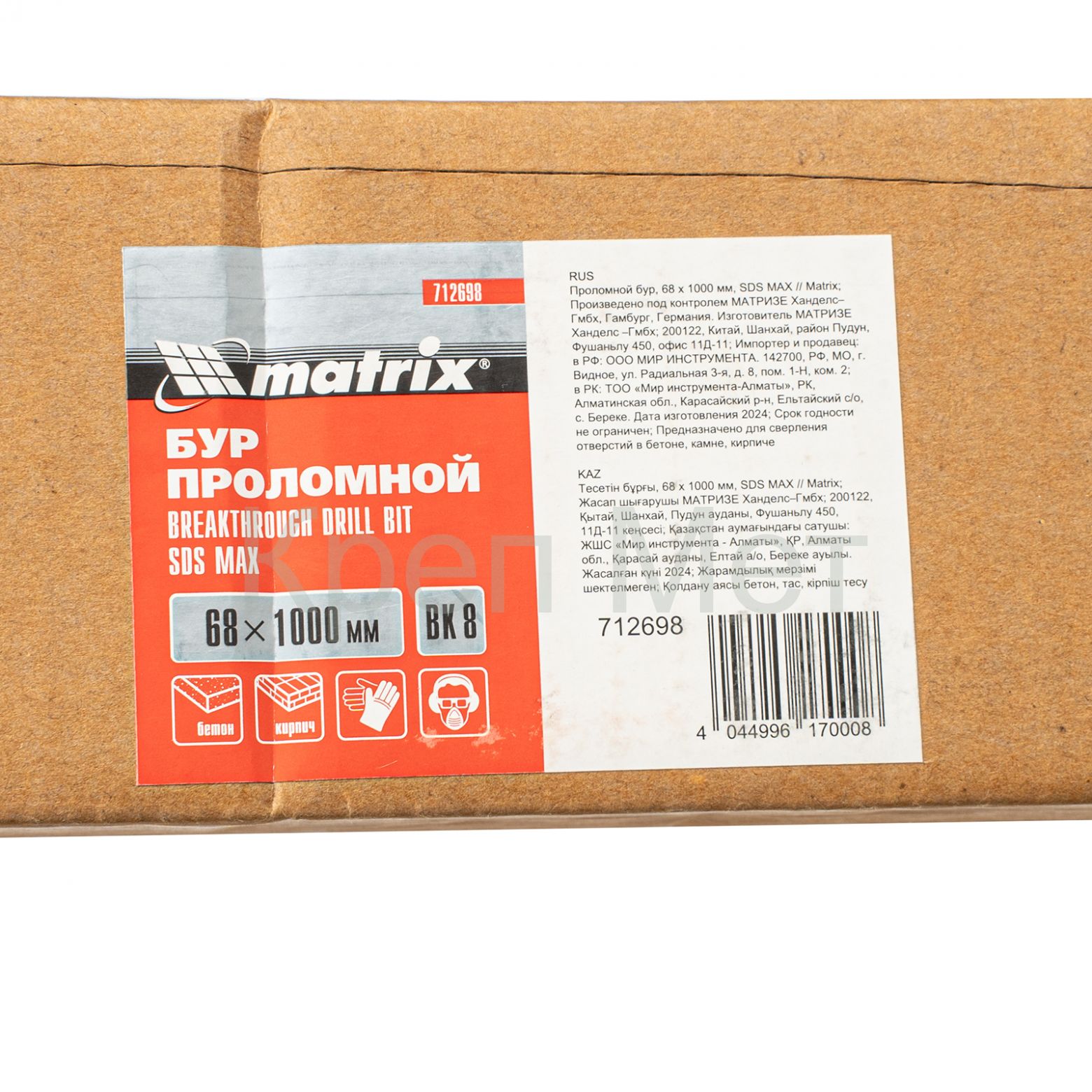 Проломной бур Matrix 712698 с хвостовиком SDS MAX позволяет получать сквозные отверстия диаметром 6,8 см и длиной 100 см в стенах из кирпича и бетона, полах, перекрытиях. Применяется совместно с высокомощными перфораторами SDS Max. Оптимален для прокладки газо- и водопровода, электрических коммуникаций, магистралей кондиционеров.