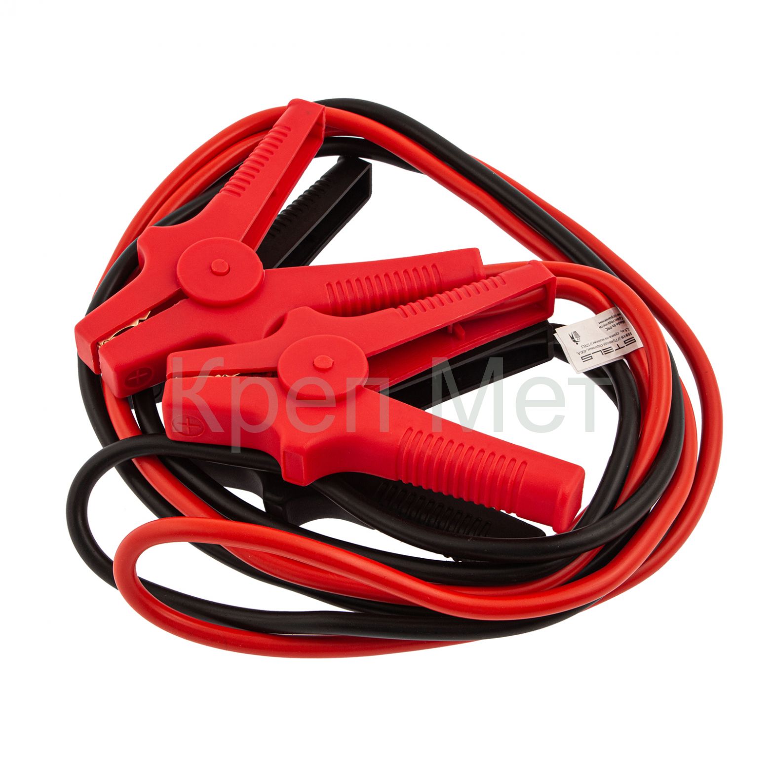 Стартовые провода Stels 55919 длиной 2,5 м, в сумке на молнии, рассчитаны на силу тока 400 А и используются для «прикуривания» легковых и грузовых автомобилей, аккумуляторы которых разрядились по причине низкой окружающей температуры или длительного хранения. Допустимой силы тока 400 A достаточно для запуска стартеров большинства автомашин. Провода пригодятся автовладельцам.