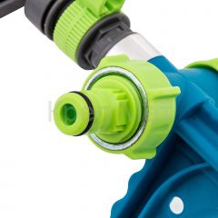 - Регулировка дальности полива до 10,5 м позволяет выбрать оптимальное расстояние подачи воды в зависимости от размера участка.