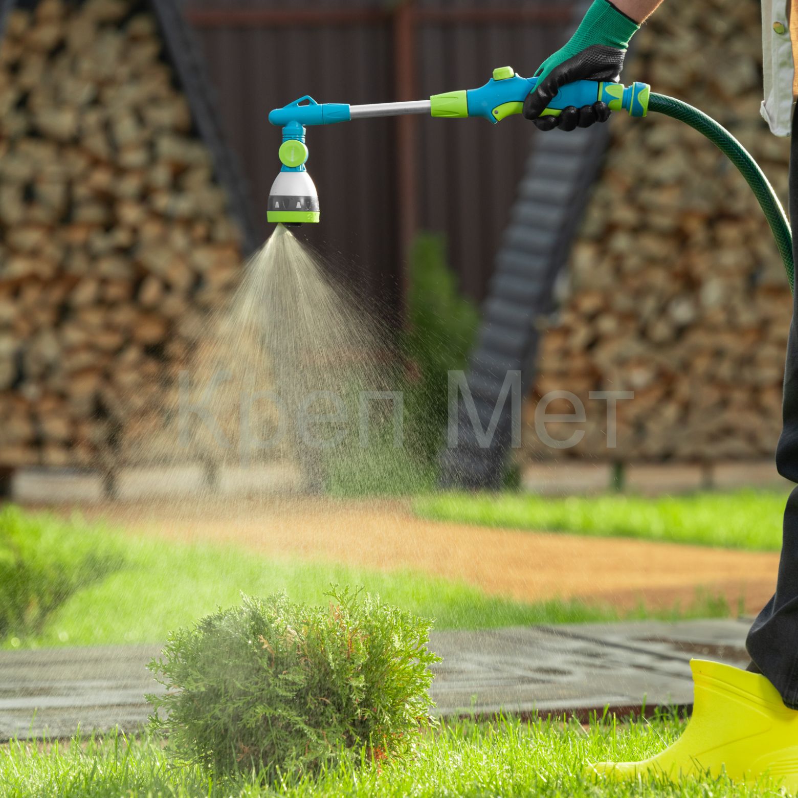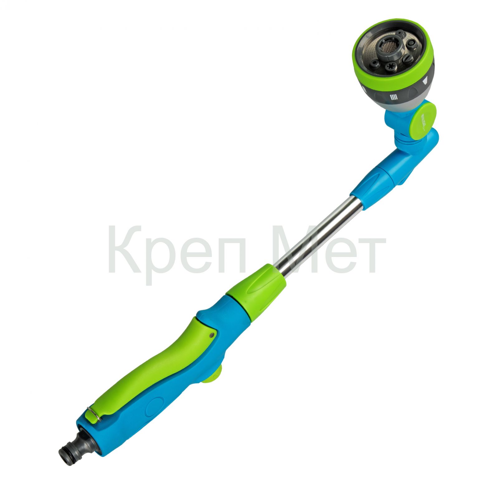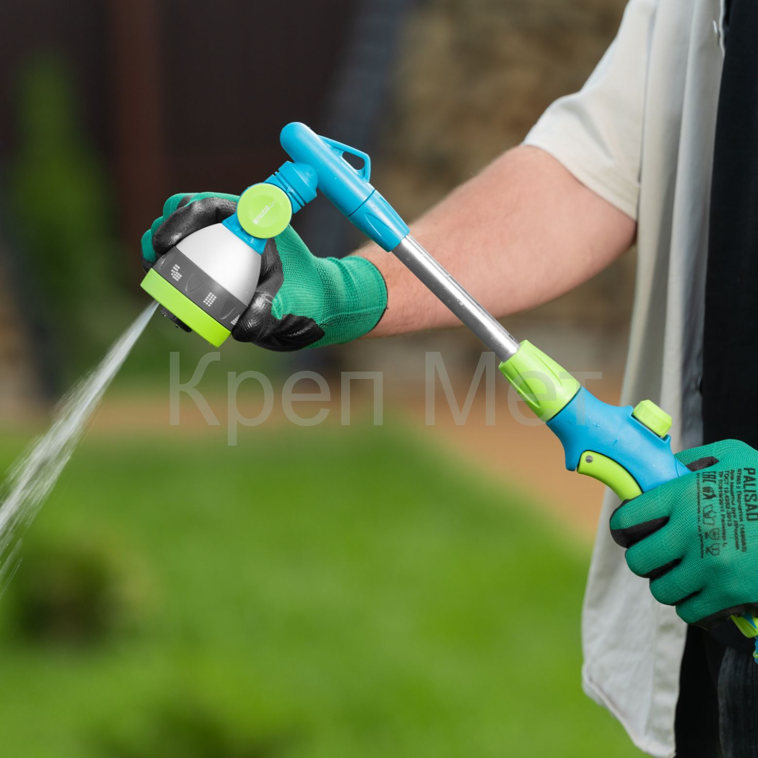 Распылитель Palisad Luxe 65802 на алюминиевой штанге длиной 500 мм, с 7 режимами работы и поворотной головой, подходит для орошения участков большой площади и растений в цветочных горшках, а также для очистки удаленных и труднодоступных мест. Расход воды можно плавно регулировать одной рукой, что облегчает решение поставленных задач.
