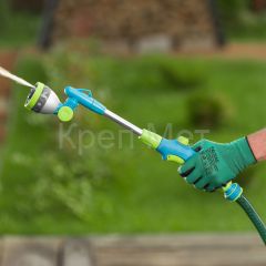 - Удобное использование — клавиша подачи/отключения напора позволяет вести полив одной рукой.
