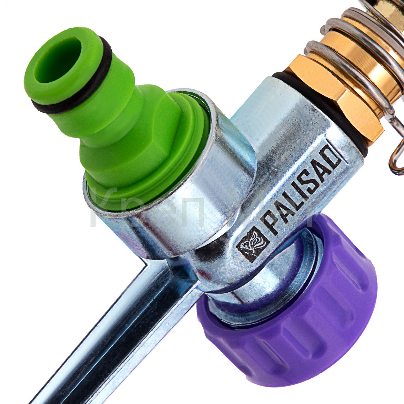 - Универсальное штуцерное соединение — устройство можно подключать ко всем поливочным системам Palisad и Palisad Luxe.
