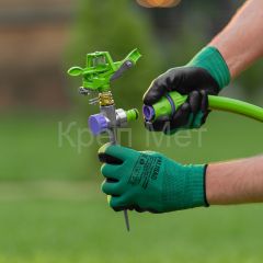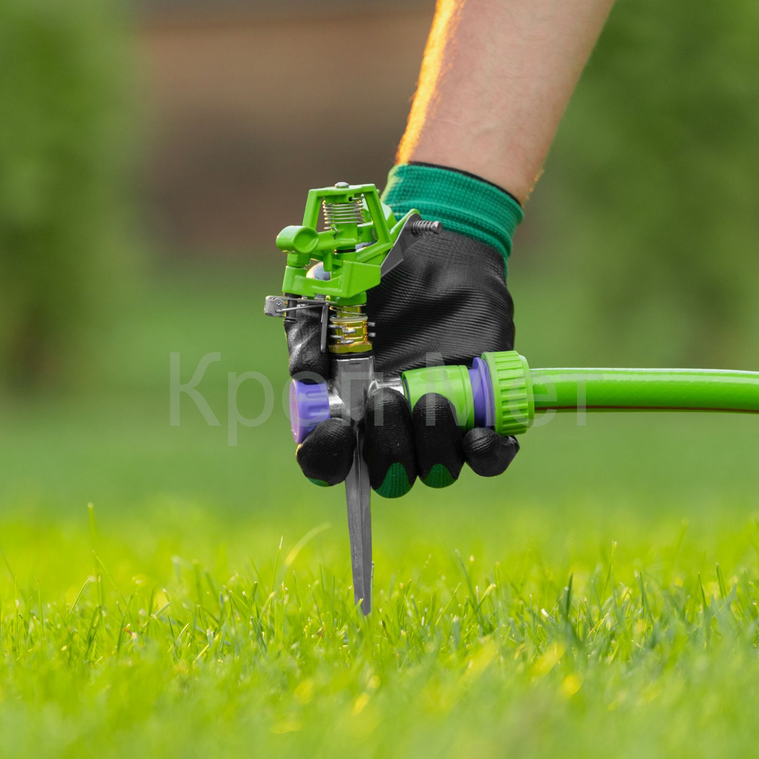 - Простая установка — распылитель надежно фиксируется в почве при помощи штыря-пики.