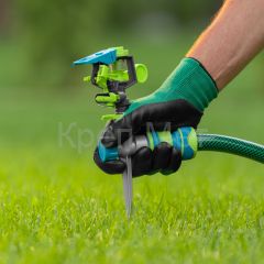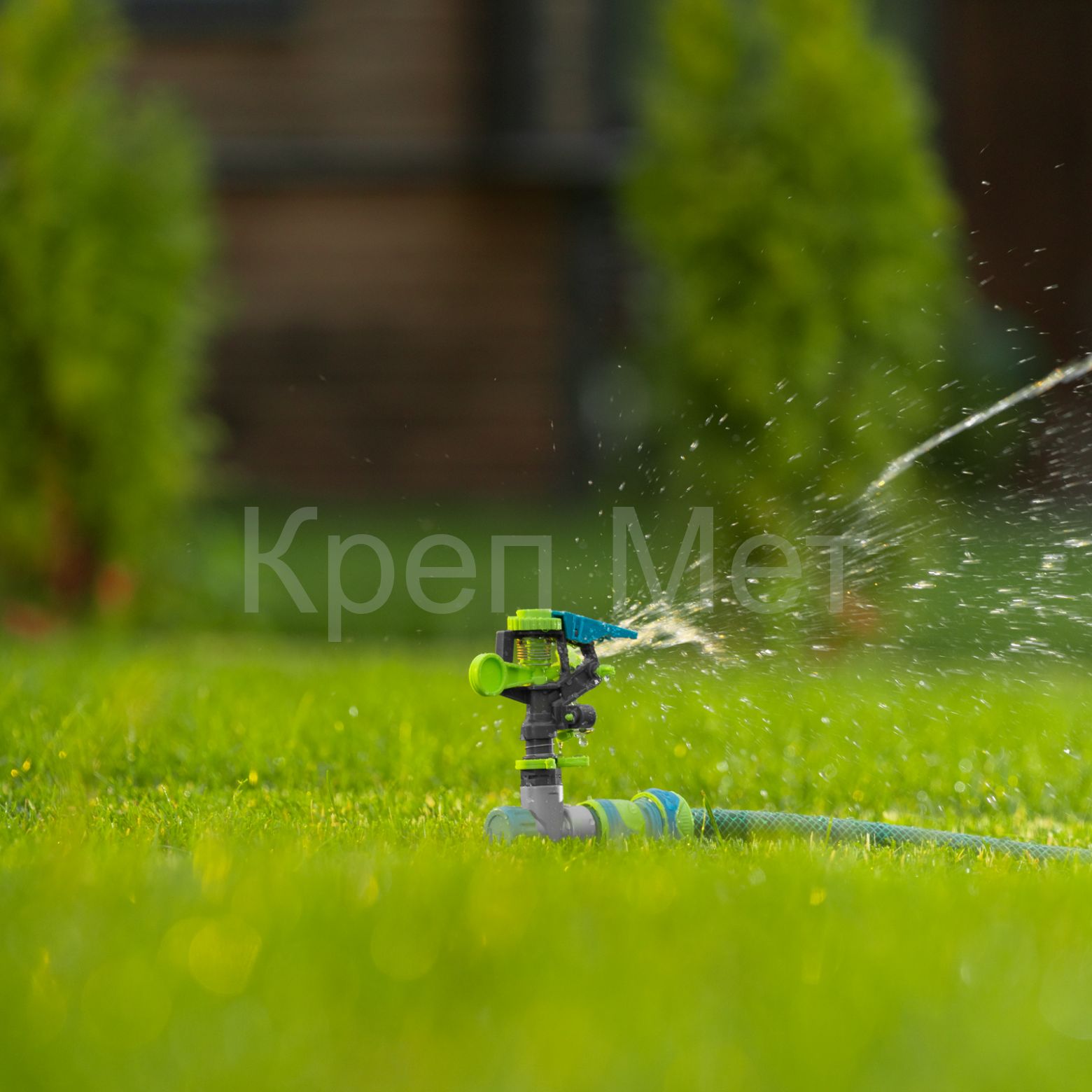 Импульсный усиленный разбрызгиватель Palisad Luxe 65796 с регулировкой угла горизонтального распыления до 33 м позволяет организовать стационарный полив на участке площадью до 390 кв. м. Меняя угол струи и дальность разбрызгивания, можно задавать конкретный сектор орошения. Устройство пригодится для ухода за зелеными насаждениями на приусадебном участке и прочих озелененных территориях.