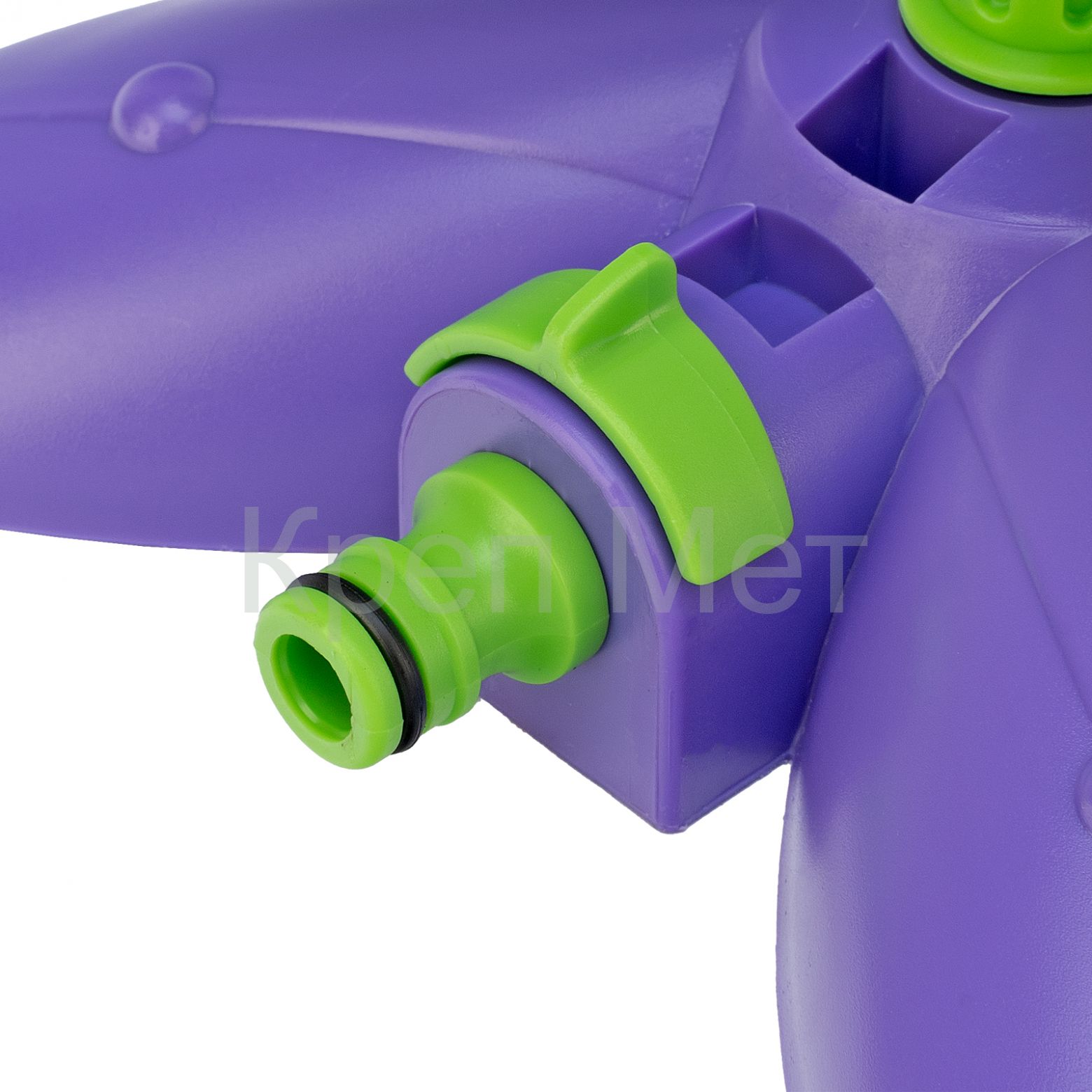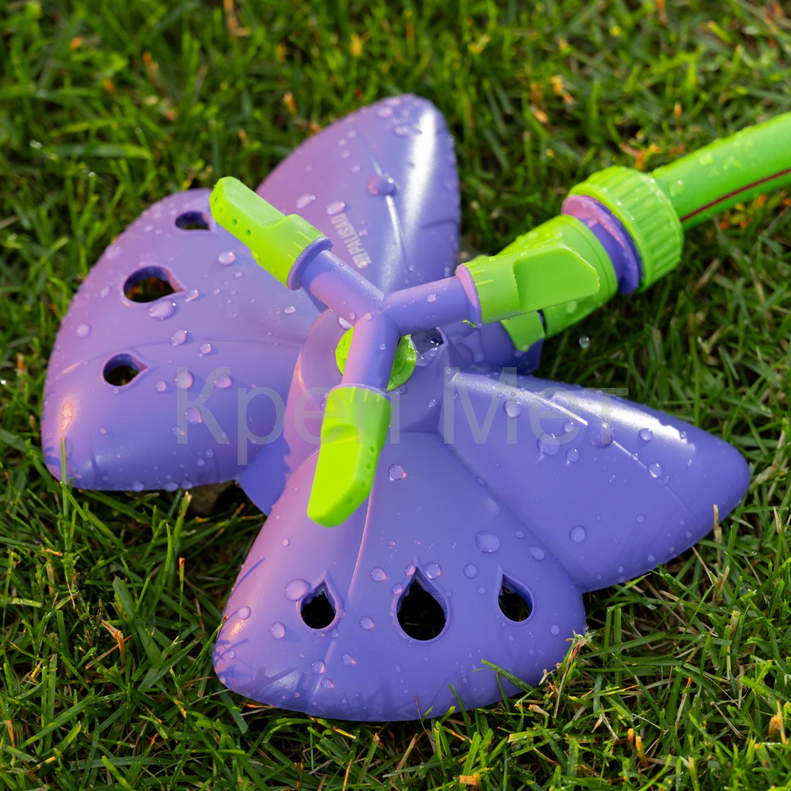 Вращающийся разбрызгиватель Palisad «Бабочка» 65401 с 3 лопастями, с регулировкой, используется для орошения газонов и садовых участков. Максимальная площадь полива составляет 58 кв.м. Дальность распыления можно варьировать от 2 до 4,3 м. На каждой лопасти 4 отверстия, обеспечивающие равномерный полив. Основание выполнено в форме бабочки, что придает устройству оригинальный вид.