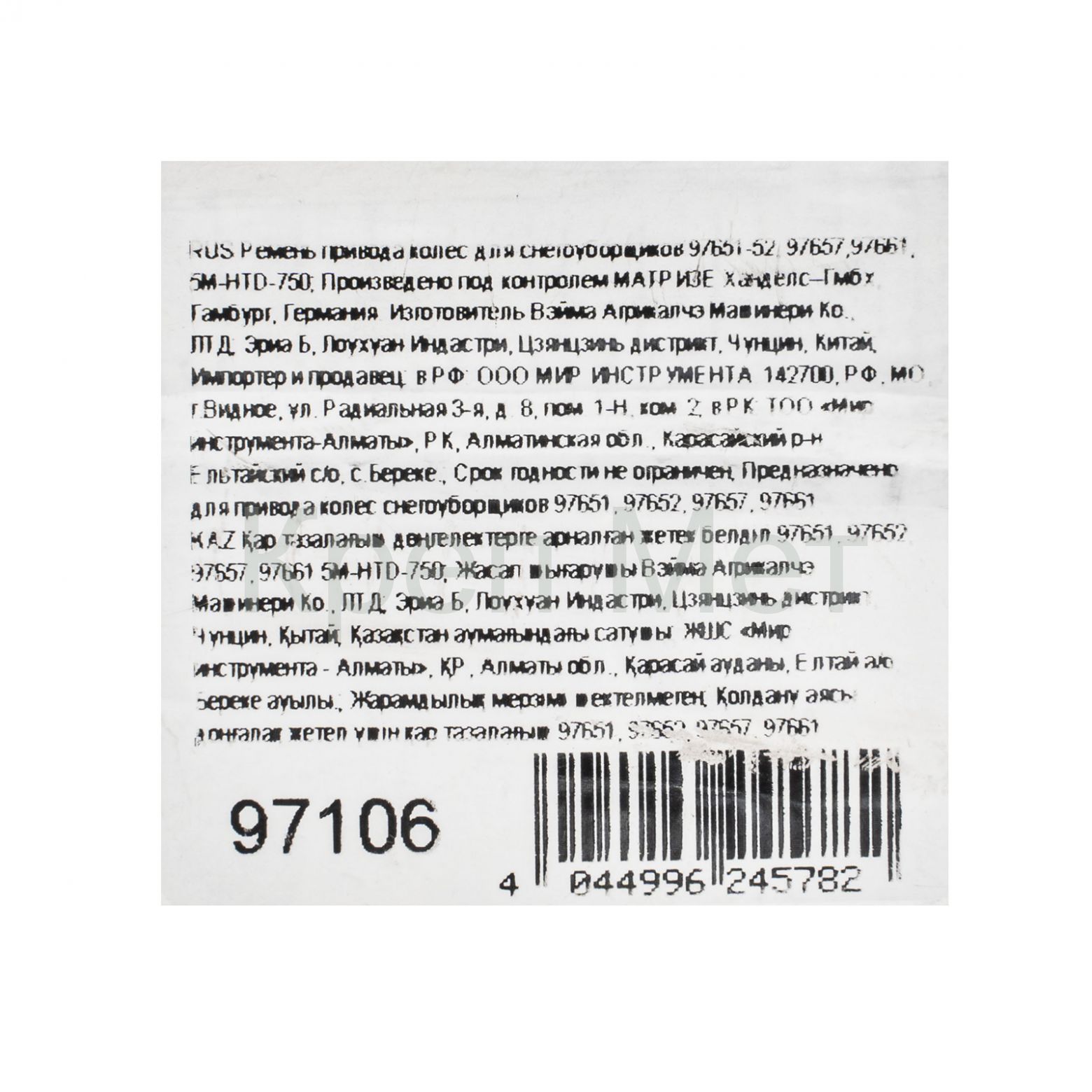 - Ремень привода колес для снегоуборщиков 97651-52, 97657,97661, 5M-HTD-750