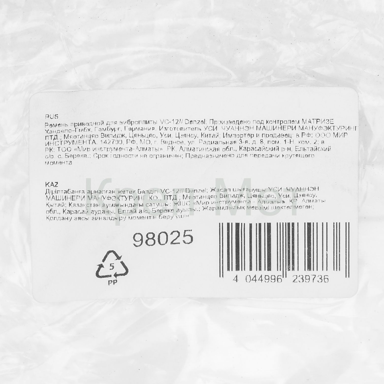 Приводной ремень Denzel 98025 передает крутящий момент с выходного вала, обеспечивая эффективное функционирование виброплиты Denzel VC-12. Позволяет восстановить работоспособность техники в случае растяжения или обрыва установленного ремня.