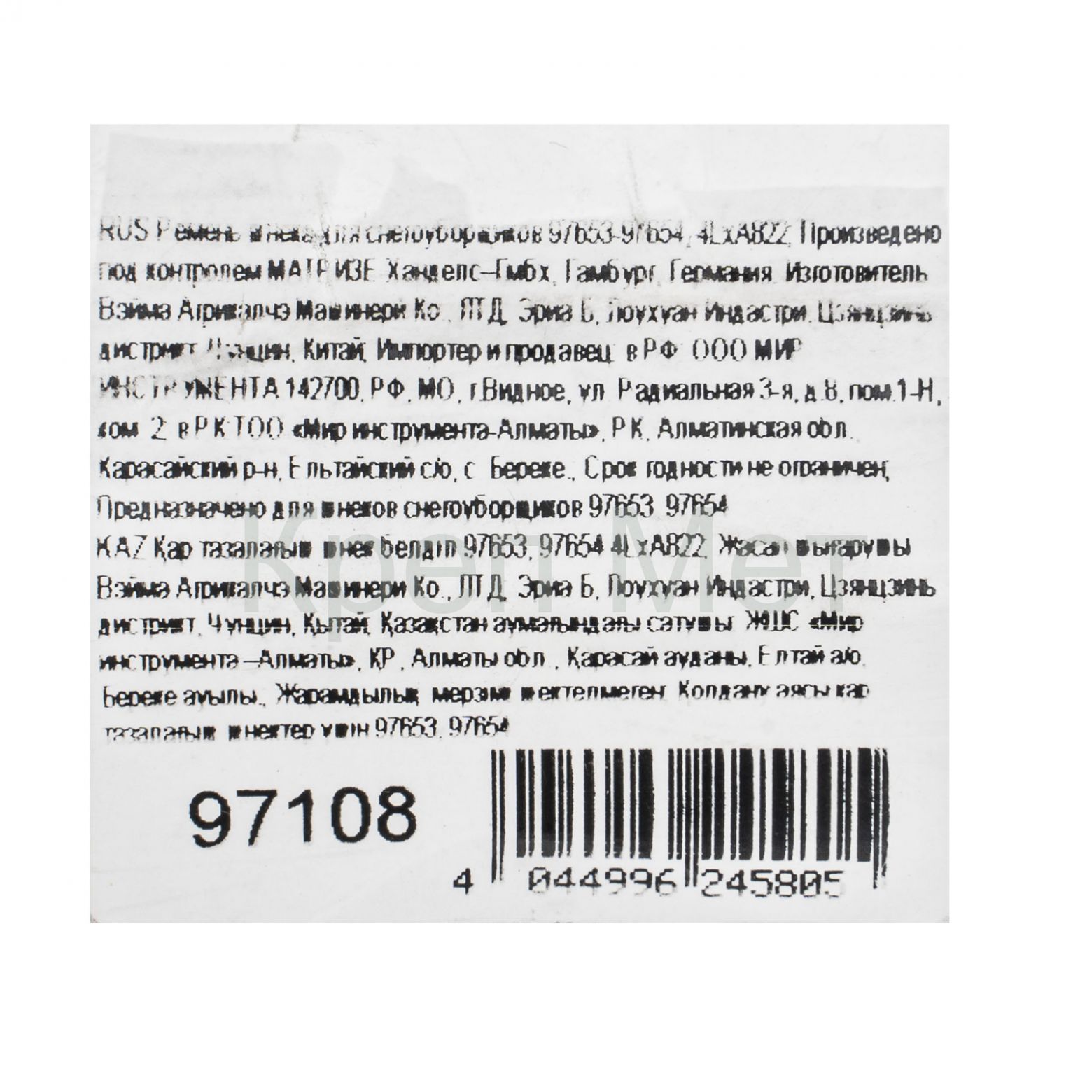 - Ремень шнека для снегоуборщиков 97653-97654, 4LхA822