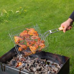 Объемная хромированная решетка-гриль Sparta 69553 размером 240 х 310 х 55 мм используется для удобного размещения продуктов и их приготовления на углях. С ее помощью мясо, рыба или овощи обжариваются равномерно с двух сторон, что позволяет получить вкусные блюда. За счет регулировки высоты решетки возможно приготовление продуктов любого размера без потери сока.