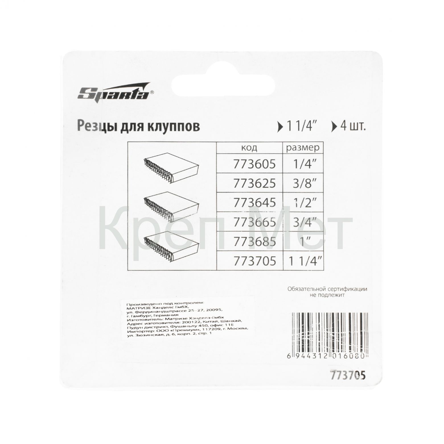 Резцы для клуппов Sparta 773705, 4 шт. в упаковке, — сменные режущие элементы для нарезания наружной правой резьбы диаметром 1 1/4" на трубах. Применяются для прокладки трубопроводов различного назначения.